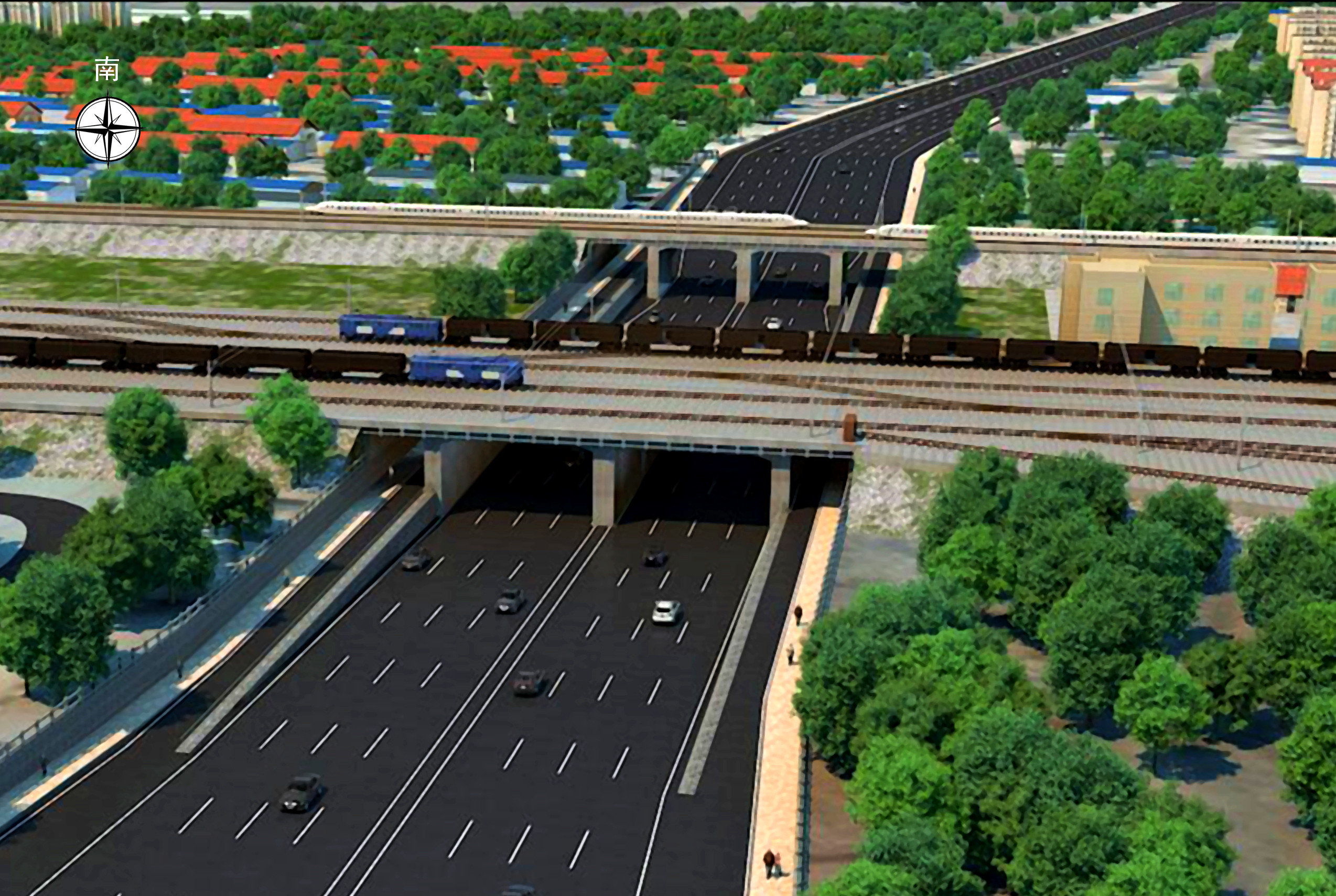"车脚山隧道洞口效果图"与"凤凰路穿跨胶济铁路效果图"