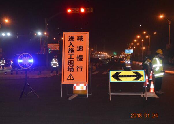 当时气温在零下10℃左右,施工人员、材料、机械全部准备完毕,现场参与施工人员达200余人、各类设备20余台。截止到次日凌晨4点,东营路至淄博路段施工区域已按照业主要求封闭完成并正式开始施工。