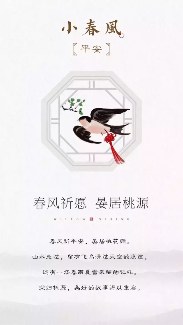 小春风,以诗意的水墨风,将象征着生机、活力、美好与希望的春天收藏在这一座“都市桃花源”之中,寓意着春天的种种美好、春天般的幸福生活能够常驻于此。