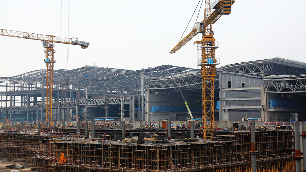 展馆区域主体结构收尾中,计划6月底主体结构封顶
