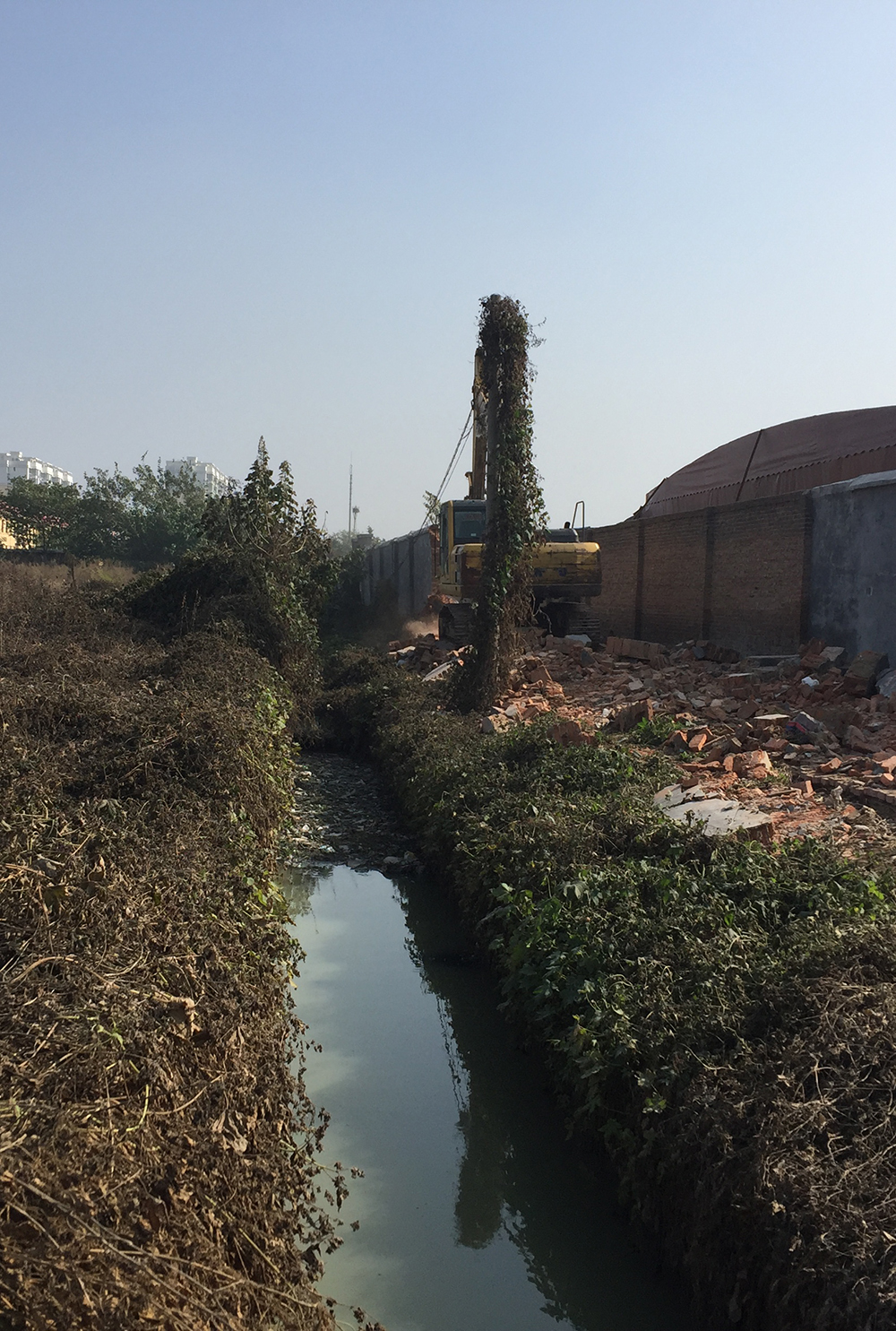 济空四站边沟是由拖机路自东向西的一条雨污混流的沟渠,主要污水来源为附近居民的生活污水,全长约1.56公里,断面为1.6×1.8米,大部分是路面下的暗沟,约600米为明沟,明沟内垃圾、淤泥沉积,黑臭水不断,黑臭等级为重度黑臭水。