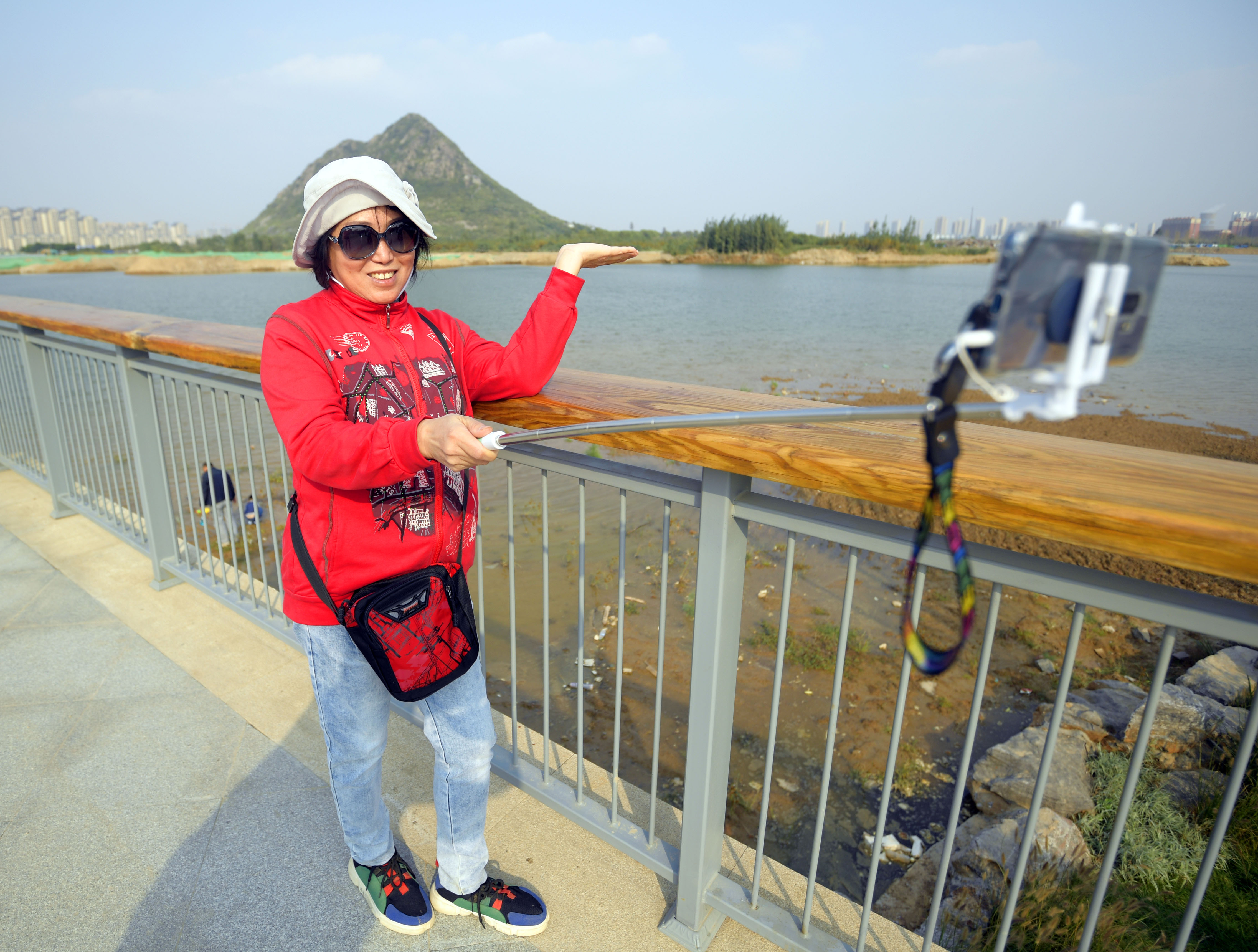 在公园西入口观景平台上,几位临湖起舞的曳步舞爱好者动作流畅一致、摇曳生姿,引来众人驻足观看喝彩。领舞的王女士告诉记者:“我们几位都是快乐阳光曳步舞团的成员,得知公园开放了,我就极力推荐大家到这边来看一看跳一跳,没想到以前‘晴天一身土、雨天一身泥’的华山,如今成了有山有水的好地方。”“这里山好水好人气旺,大家跳得更带劲了,我们计划把练舞场地转到这儿来。”舞团领队陈先生说。