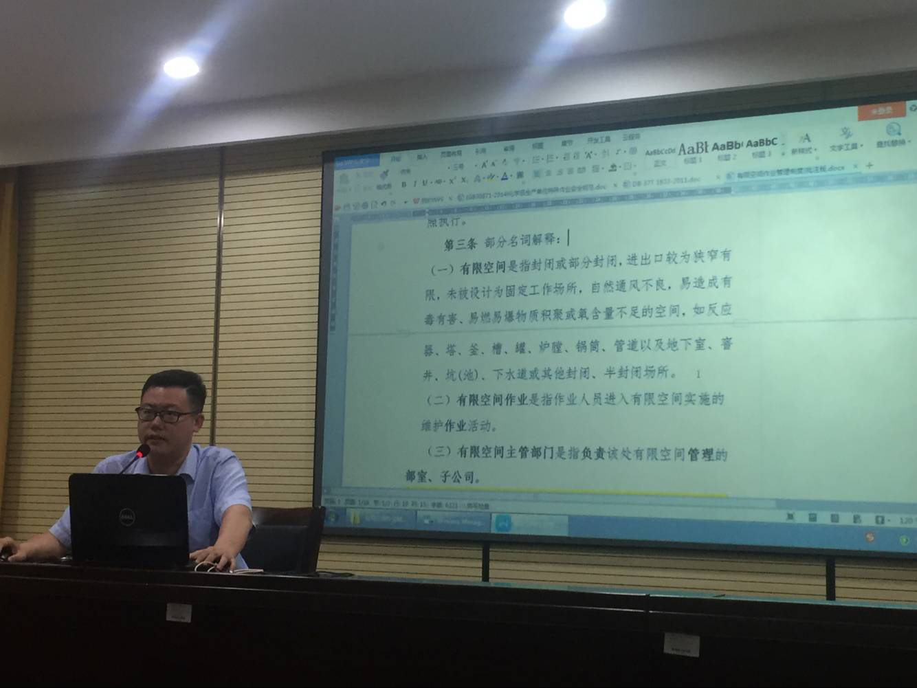 为更好的推进落实《有限空间作业管理制度》,增强管理人员和作业人员对制度和相关法律法规的认识,加强有限空间作业审批及管控力度,降低安全事故发生概率,安全质量部和企管人力部在6月6日下午共同组织了公司《有限空间作业管理制度》及有限空间作业相关法律规范的培训活动。
