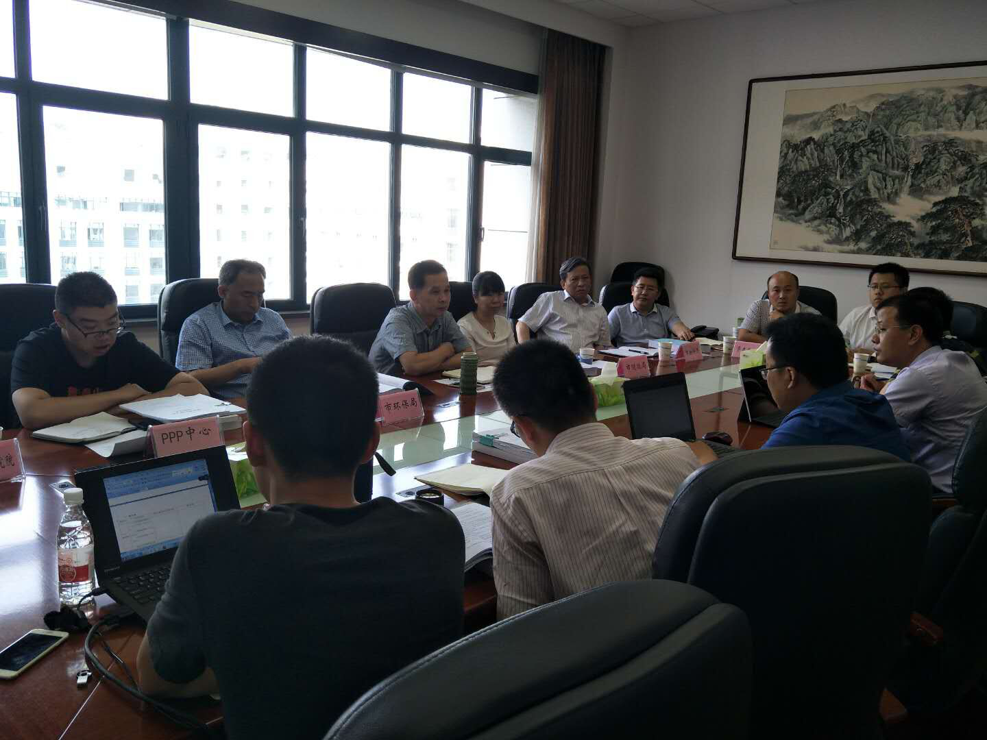 图一、市城乡水务局副巡视员朱丹彤、排水处处长汤启刚、市财政、物价、环保局等有关单位与公司总经理李少成一同与社会资本预中标人谈判。
