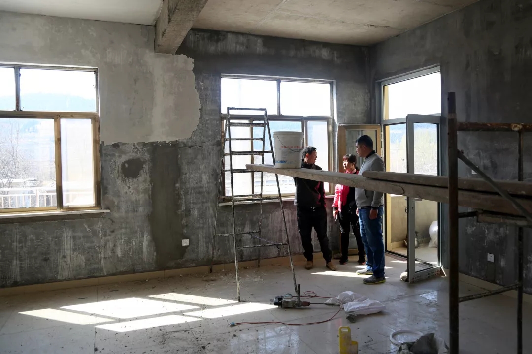 10:15王栋栋和任书记来到了即将建成的大黄崖村党群服务中心,督促落实服务中心的收尾工作。这处600平方米的村级办公场所和幸福院,是整合了集团帮扶资金、民政资金、企业捐助资金共计74万元建设的,计划在5月底前正式投入使用。