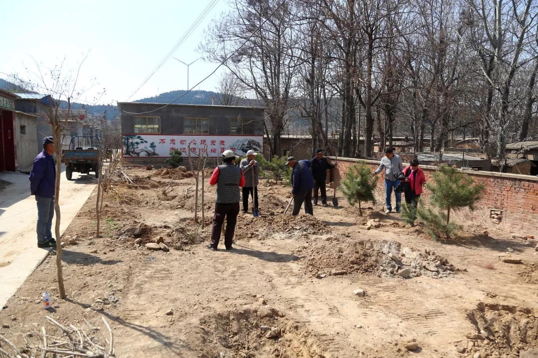 今天的第一项工作,是要在村里的公共裸土上植树增绿。“这片位于村口的空地原来是块荒地,时间长了成了处垃圾场,既污染环境又影响村容村貌,按照镇里裸土覆绿的要求,我们用争取的1万元资金购买了黄金槐、黑油松、樱花等好存活且观赏性较强的苗木,把原荒地整平后进行裸土覆绿”王栋栋说道。
