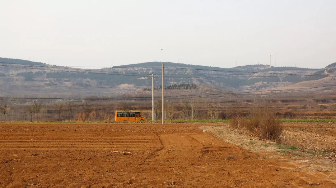 16:30一辆校车从山间道路上驶过。王栋栋要赶回镇里,去为村里的贫困户领取帮扶用品。