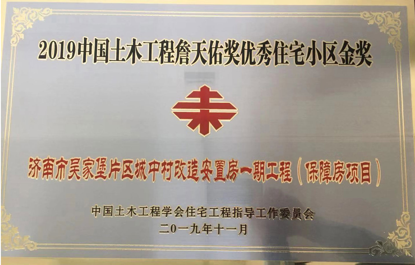 中国土木工程詹天佑奖是中国土木工程领域科技创新最高奖项,是经科技部核准,建设部认定,在住建部、铁道部、交通部、水利部的共同支持下主办的一项以“创新性、先进性、权威性”为评选标准的建筑奖项。为进一步扩大示范效应,自2004年起在中国土木工程詹天佑大奖下设中国土木工程詹天佑奖优秀住宅小区金奖。此次,吴家堡安置房一期项目获此殊荣,是行业对项目建设成果高度认可的体现,荣誉背后,承载着每一位建设者“承载城市梦想,建设美好生活”的企业使命。