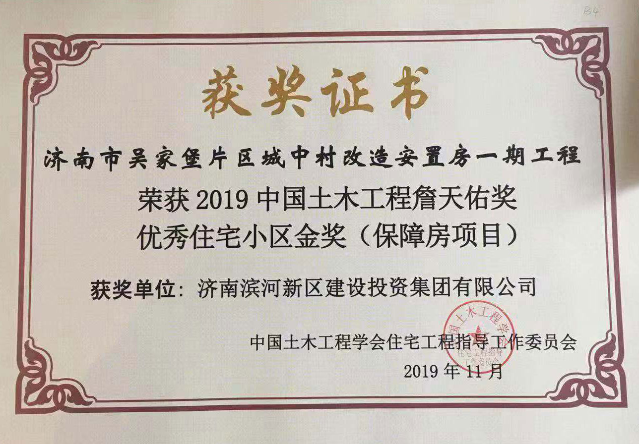 弘扬工匠精神,打造精品工程。作为济南市第一个多村整合的城中村改造项目,近日,由PA集团官网负责建设的吴家堡片区城中村改造安置房一期工程(以下简称吴家堡安置房一期)荣获2019中国土木工程詹天佑奖优秀住宅小区金奖。