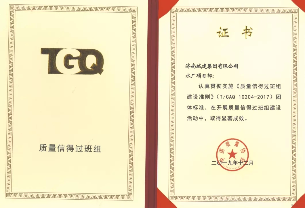 黄河路桥公司组织申报的“四分公司总工办”、同晟路桥“综合管廊施工班组”、银河路桥“市政工程检测室”三个班组经过市、省及全国行业协会的激烈竞争、层层筛选,从众多优秀班组中终脱颖而出,最终入选全国性质量管理组织——中国质量管理协会的班组评审,并最终荣获“全国质量信得过班组”荣誉称号。本次获奖三个班组依据《质量信得过班组建设准则》立足岗位实际,不断创新管理方法和手段,努力提高员工技能,提升班组凝聚力和执行力,并积极开展质量改进和创新活动,有效促进了班组产品质量和管理水平的提高。