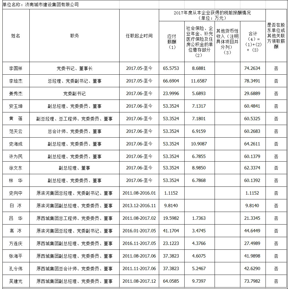 市属国有企业2017年度企业负责人薪酬情况一览表