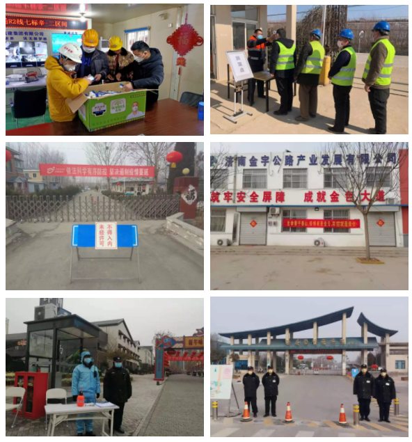 1月28日起,集团领导班子成员一律停止休假,根据各自职责,以“四不两直”的方式分头督导检查各类企业、重点项目的运营和疫情情况,先后督查了凤凰路黄河大桥、济南黄河隧道、齐鲁黄河大桥、华山景区、印象济南泉世界、济西农场、园博园、山东健康养老中心等重点工程和人员易聚集项目,督导各单位负责人严格执行上级部门关于强化工地疫情防控的各项要求,建立防控台账,实行防控工作日报制度,严格落实值班工作规定,推行网上办公方式;紧急采购储备医用口罩、体温计、消毒水、洗手液等物资,持续做好环境卫生工作,增加公共场所清扫、清洁、消毒频次,安排专人做好农民工返岗情况统计,并做好外来人员体温检测及登记工作,确保重大事项第一时间请示汇报。截至2月9日,集团各项目部施工人员共返岗85人,身体健康正常,为下一步有序复工奠定了基础。