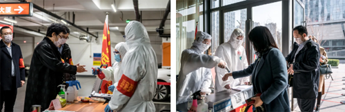 时间倒回至2月25日,蒙蒙细雨中,6位要参会的同志被“拦”在大厦门口,经过防疫人员的“盘查”和测体温等多个程序才得以进入大厦。然而差点被拒之门外的他们不仅没有怨言,反而盛赞“六亲不认”的一线防疫人员和资产公司严格的防控举措。