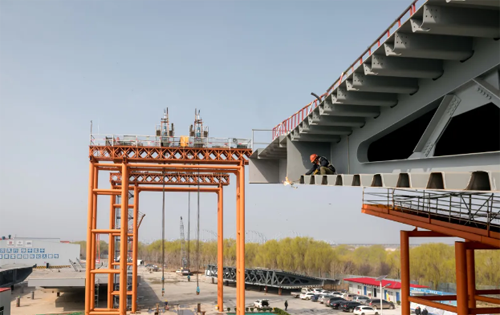 板单元进场、焊接、组成块体、涂装、上顶推平台、焊接、顶推,施工环节一环扣一环,相当于流水作业,每个工序之间无法同时进行。面对锁死的工期,如何将疫情对工期的制约降到最小。为了克服困难,王伟清楚地记得他和施工方进行了多次研讨,尽最大的努力减少了疫情对工期的影响。