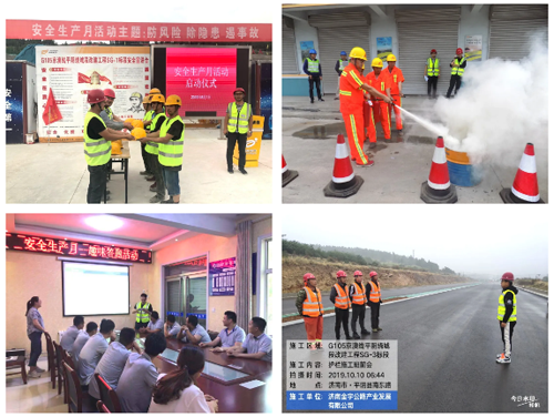 项目涉及桥梁工程、大型结构物、石方爆破、隧道工程、构件的加工与运输安装等,安全管理难度较大,金曰公司项目部从“综合治理、责任落实、应急演练、科技结合”四方面入手,以更严格的要求,更有效的措施,更高压的态势,更严明的纪律,坚守生产红线和底线思维,夯实安全生产基础。金宇公司项目部通过建立严格的安全教育制度,做到施工人员入场教育、施工前安全技术交底、每周按班组安全教育、每日召开施工班前会,提高施工人员安全意识,筑牢施工安全防线。其中,金曰公司参建的SG-1标段作为济南市国省道唯一的工程项目参加了省交通运输厅“2019年度平安示范工地”评选活动。