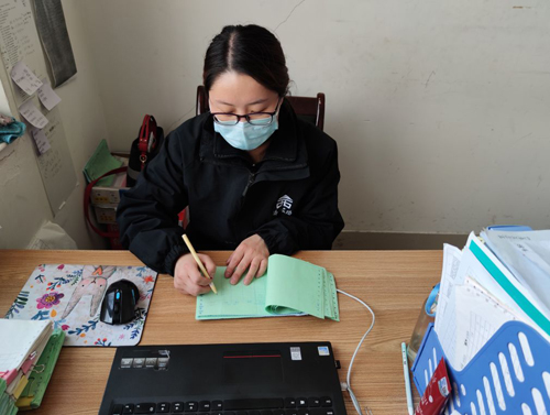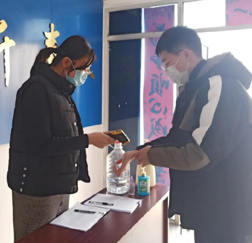 王娟每天负责出入人员的体温测量和出入登记,看似重复又简单的工作,王娟同志却十分认真负责,丝毫不敢懈怠。
