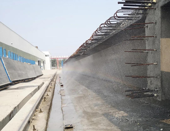 施工现场在严格落实“四个一律,六个百分百”环保要求的基础上,用“可持续”的眼光对项目传统的施工工艺、技术等重新审视、改进。现场安装扬尘、噪音在线检测设施;钢筋加工区采用焊烟净化器;灰土施工采用粉料撒布机,配合湿法作业;箱梁自动养护喷淋系统,满足梁板养护质量同时提高了水资源的循环利用;钢筋加工集约化,实现文明施工,既减轻了工地施工现场管理负担,又减少多点位的环境噪音、烟气污染源,从根本上改善了施工扰民问题。