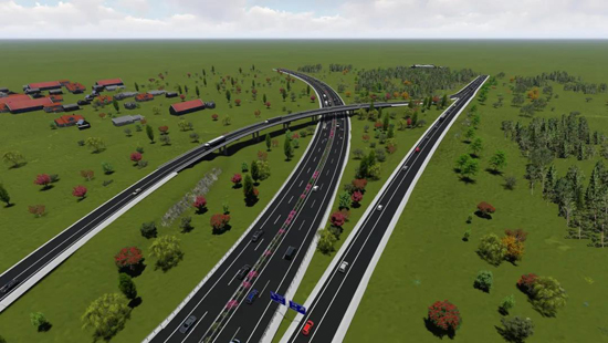 循环利用旧路材料,通过厂拌热再生和厂拌冷再生方式,变废为宝。同时,对基本农田进行避让,通过挡墙设计减少占地,较工可立项减少67.203亩;桥梁设置防抛网,有效保证桥下行车安全。