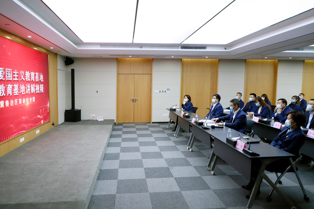 全体党员首先通过网络参观了位于乐陵的冀鲁边区革命纪念馆,了解了冀鲁边区光辉的历史。大家在人民英雄纪念碑前默哀,深切缅怀革命先烈,向英雄致以最崇高的敬意,感悟革命先烈用鲜血和生命铸就的“敢为人先、大爱为国、不屈不挠、团结奉献”的冀鲁边红色精神。面向党旗,全体党员重温入党誓词,再一次向党做出庄严承诺。随后,全体党员共同观看经典抗战电视剧《亮剑》片段,感悟“面对强大的对手,明知不敌,也要毅然亮剑,即使倒下,也要成为一座山,一道岭!”的亮剑精神。