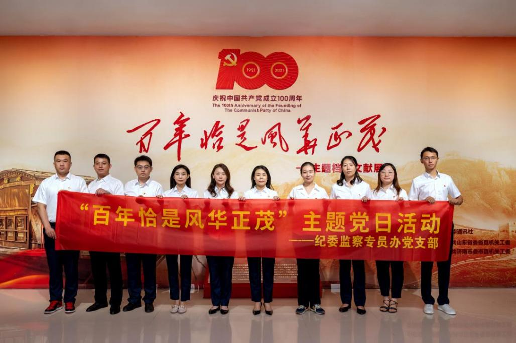 纪委、监察专员办公室党支部全体党员参观山东省档案馆“百年恰是风华正茂”主题档案文献展并重温入党誓词,引导全体党员全面了解、正确认识党的光荣历史、伟大成就、宝贵经验、革命传统和优良作风,了解党全心全意为人民服务的根本宗旨和立党为公、执政为民的本质,充分发挥红色档案的教育、引导和激励作用,激励干部职工干事创业热情。