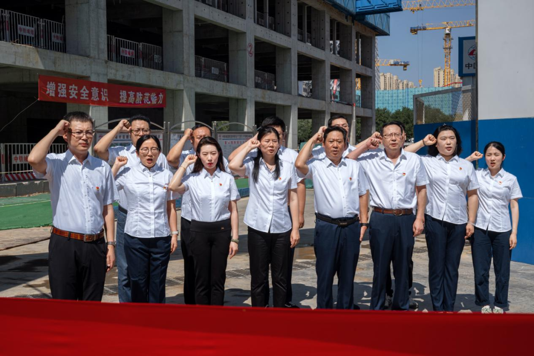 工程一部党支部组织全体党员在腊山河西侧3#地块开展重温入党誓词主题党日活动,推动党建工作与业务工作深度融合,强化党员干部的党性意识和宗旨意识,向党的二十大献礼。