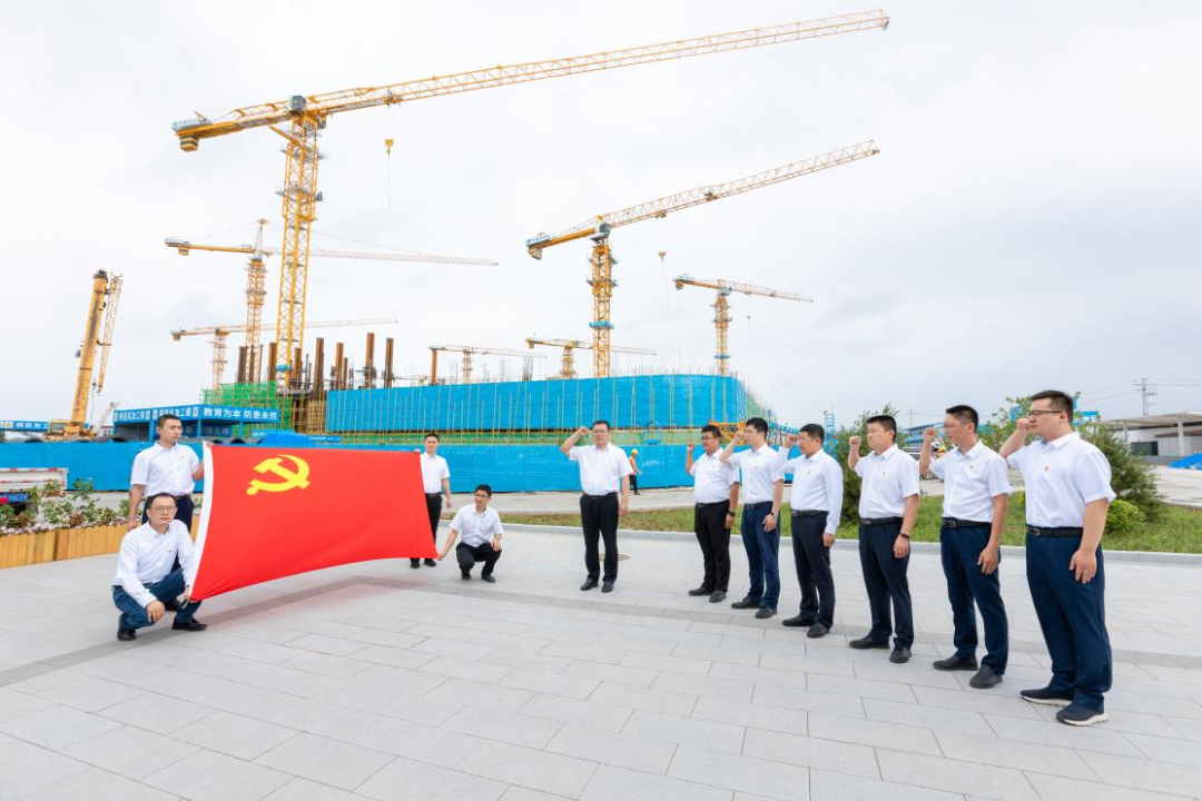 工程五部党支部在科创城项目现场开展重温入党誓词主题党日活动,同时开展支部书记讲廉政党课活动,夯实干部职工廉洁底线,激励干部职工不断加强作风建设,筑牢廉洁自律意识,高质量开展工作。