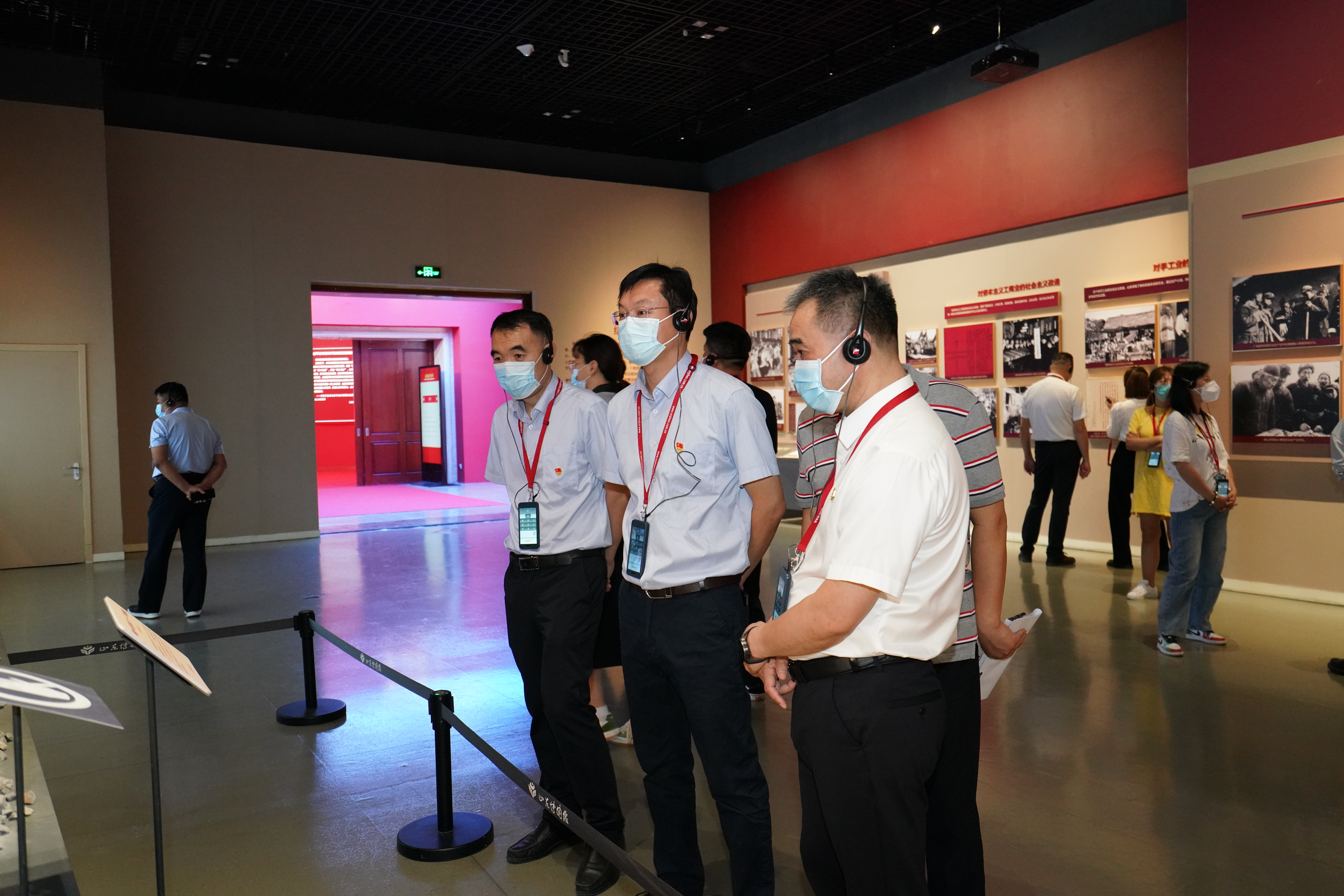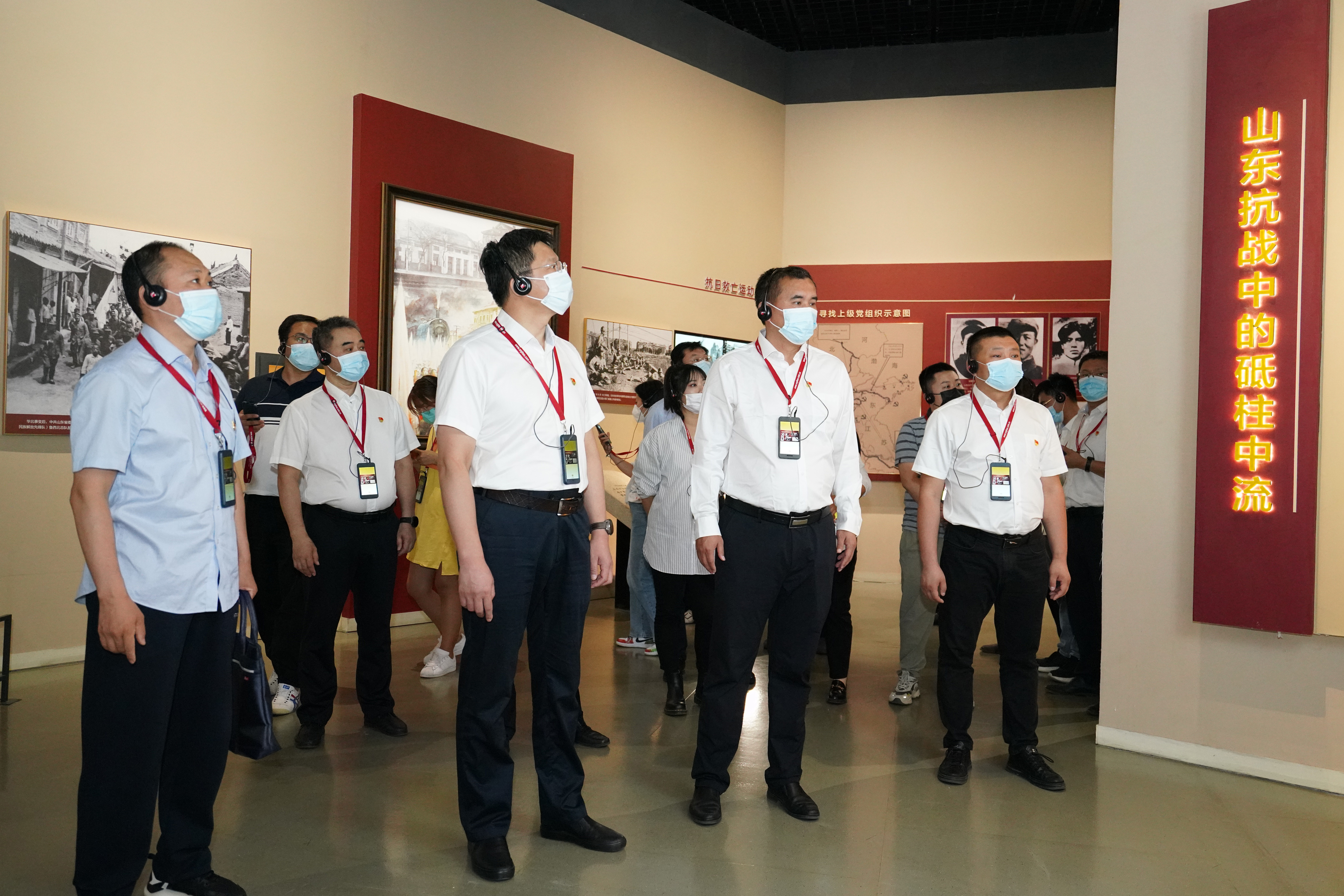 在一楼“初心--山东革命历史文物展”展厅,全体人员严格落实疫情防控要求,借助“语音导览”服务系统,进行自助式参观。大家饱含对革命先烈的崇高敬意,仔细观摩,详细倾听,从现场陈列的不同历史时期的珍贵文物、历史画卷和革命先烈事迹中,感悟山东革命发展的百年风雨历程。深刻感受到,建党精神已深深融入山东群众的历史血脉,今天的美好生活,离不开革命前辈的浴血奋斗。