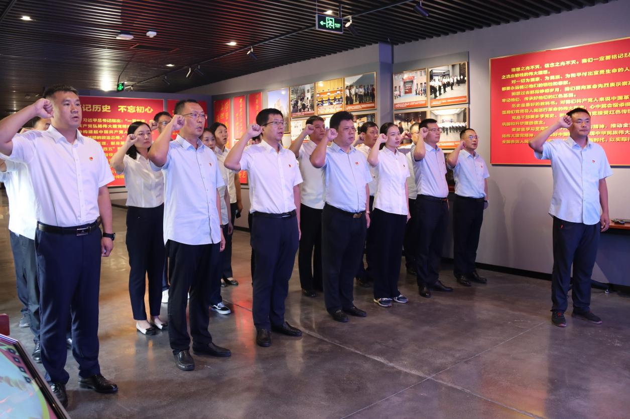 全体党员干部满怀崇敬之情,仔细瞻仰了大量珍贵的史料图片和烈士遗物,详细了解了山东早期党组织发展与斗争的峥嵘岁月,深情回望了邓恩铭、刘谦初等“四五”烈士波澜壮阔的革命生涯,全体党员干部面对党旗,重温入党誓词,并集体观看了文献纪录片。