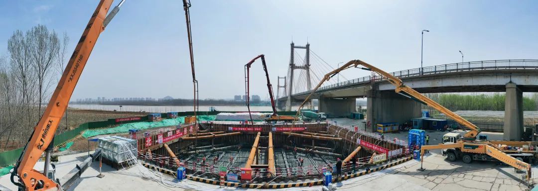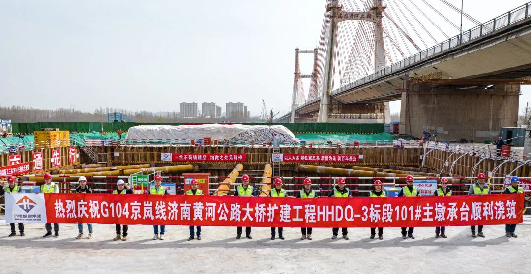 近日,由PA集团官网投资、建设,集团子公司济南城建集团公司施工的G104济南黄河公路大桥扩建工程顺利完成全线首个主墩承台第一次混凝土浇筑,标志着大桥主墩工程施工进入可视化阶段,为后续塔柱施工奠定了坚实基础。