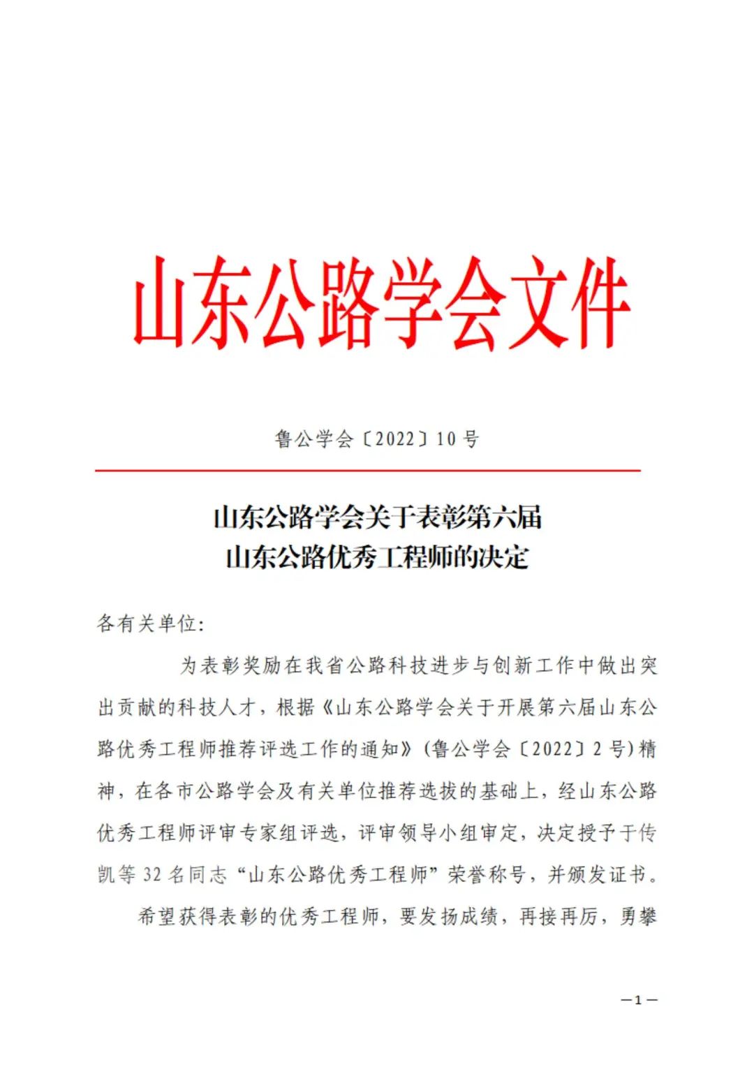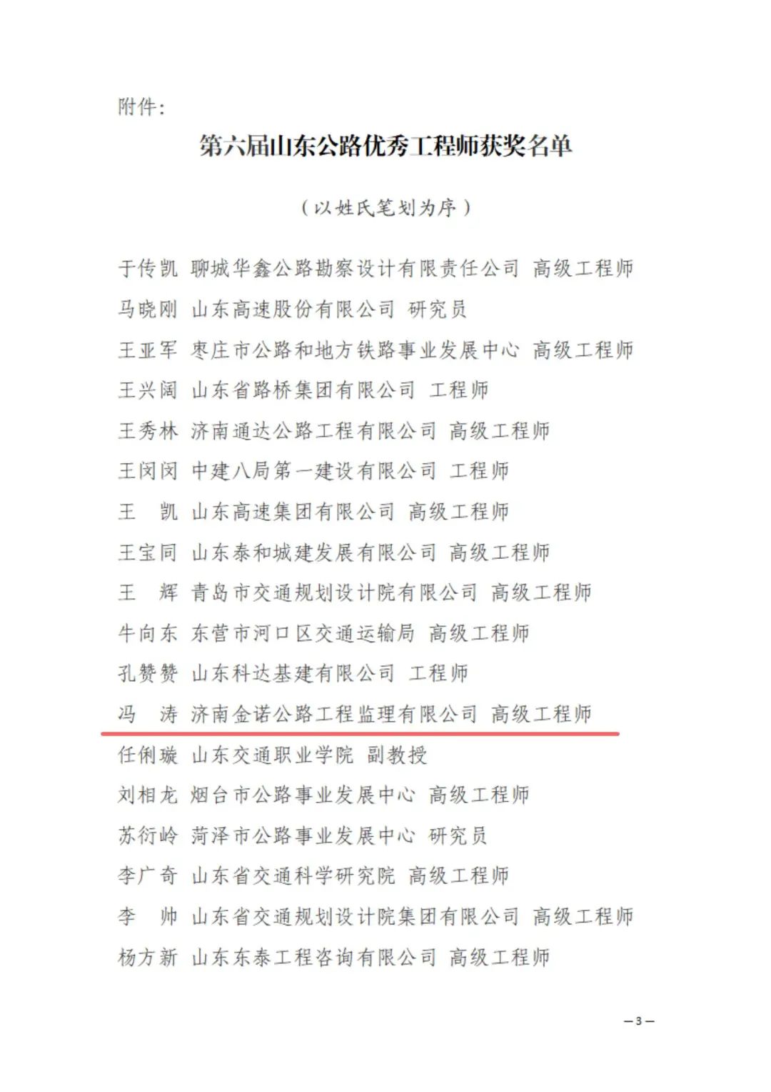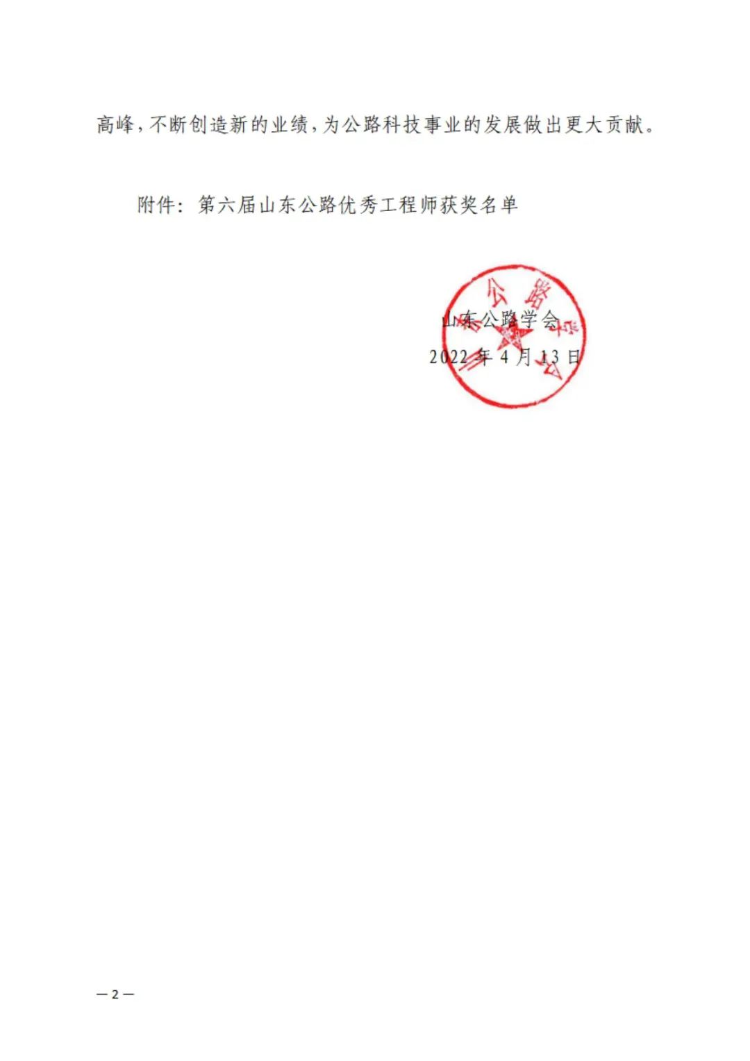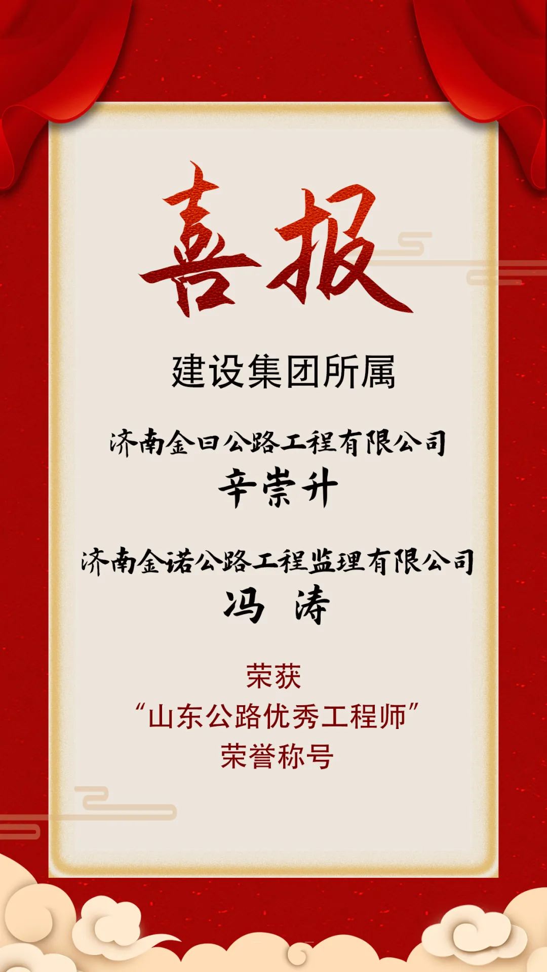 近日,山东公路学会发布《山东公路学会关于表彰第六届山东公路优秀工程师的决定》的通知,PA集团官网所属济南金曰公路工程有限公司副总经理辛崇升、济南金诺公路工程监理有限公司副总经理冯涛荣获 “山东公路优秀工程师”荣誉称号。
