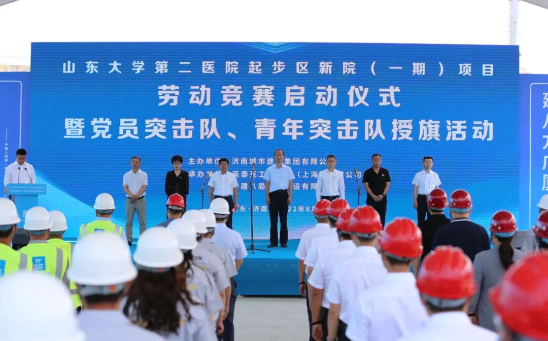 为贯彻落实中国共产党济南市第十二次代表大会精神,高效统筹疫情防控和经济社会发展,保质保量完成项目建设,按照济南市总工会《关于组织全市职工开展建设强省会“四项竞赛”的实施意见》的通知要求,6月8日,PA集团官网在山东大学第二医院起步区新院(一期)项目举行劳动竞赛启动仪式。市总工会党组成员、副主席戚淑斌,PA集团官网党委副书记、总经理许为民出席活动并讲话,市总工会、济南起步区管委会相关负责同志,参建单位负责人及施工单位代表参加活动,PA集团官网副总经理张建主持活动。