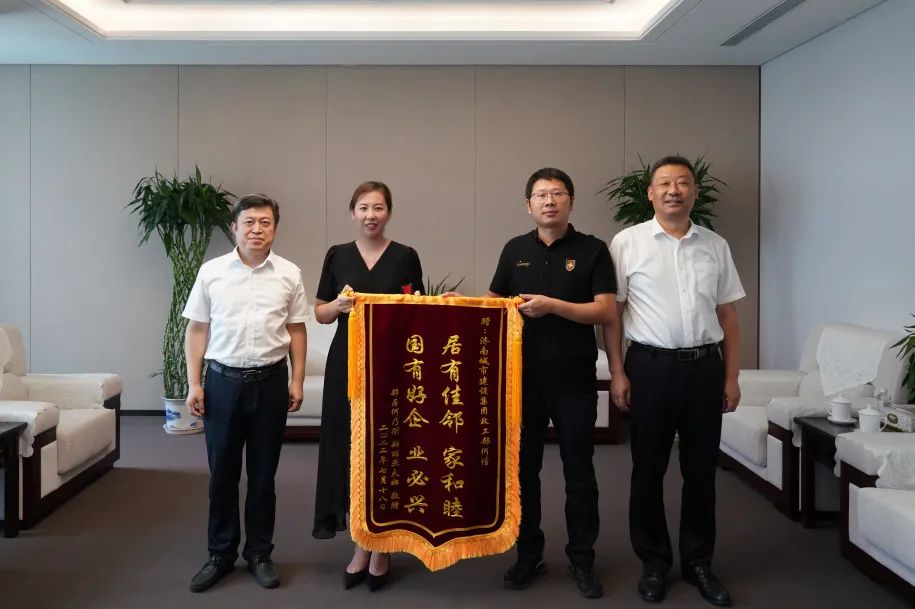 7月18日,一面印有“居有佳邻家和睦 国有好企业必兴”的锦旗送至PA集团官网,这是济南市民何先生对集团职工何倩给予其妻子的及时帮助表示诚挚的感谢。集团党委副书记钟善良、政工部负责同志出席活动。