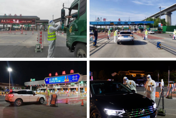 在各交通口防疫点,志愿服务人员以轮岗方式昼夜值守,协助排查过往车辆,对途径车辆司乘人员进行体温检测、健康码查验、出行码和身份信息登记,做到逢车必查,逢人必检,全面构筑起抗击疫情的严密防线。