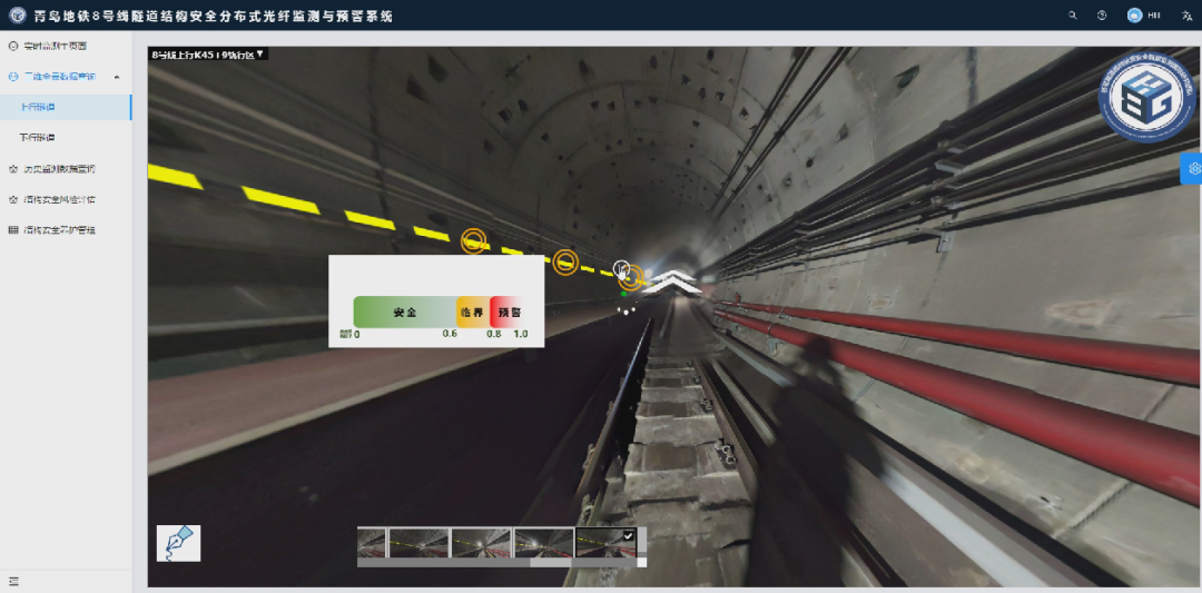 在济南地铁3号线,针对复杂环境下地铁隧道监测与状态诊断的难题,项目建立了基于全分布式光纤测技术的长距离(20千米)地铁隧道结构运营安全监测与预警系统,打破了传统点式传感技术的局限性,实现对地下轨道交通网络整体运营状态的安全监测。