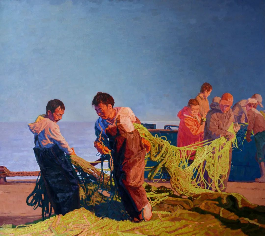 “艺术来源于生活,又高于生活”。吴爱民说:“虽然这幅画的创作背景不是济南,但体现的就是日常生活中劳动者的点滴付出”。画面中应用了暖光源,去表现渔民丰收时的愉悦心情。“劳动是一切幸福的源泉”。“因为各行各业的劳动者默默付出,城市变得更好,人民也体会到自己创造的幸福生活”,吴爱民说道。