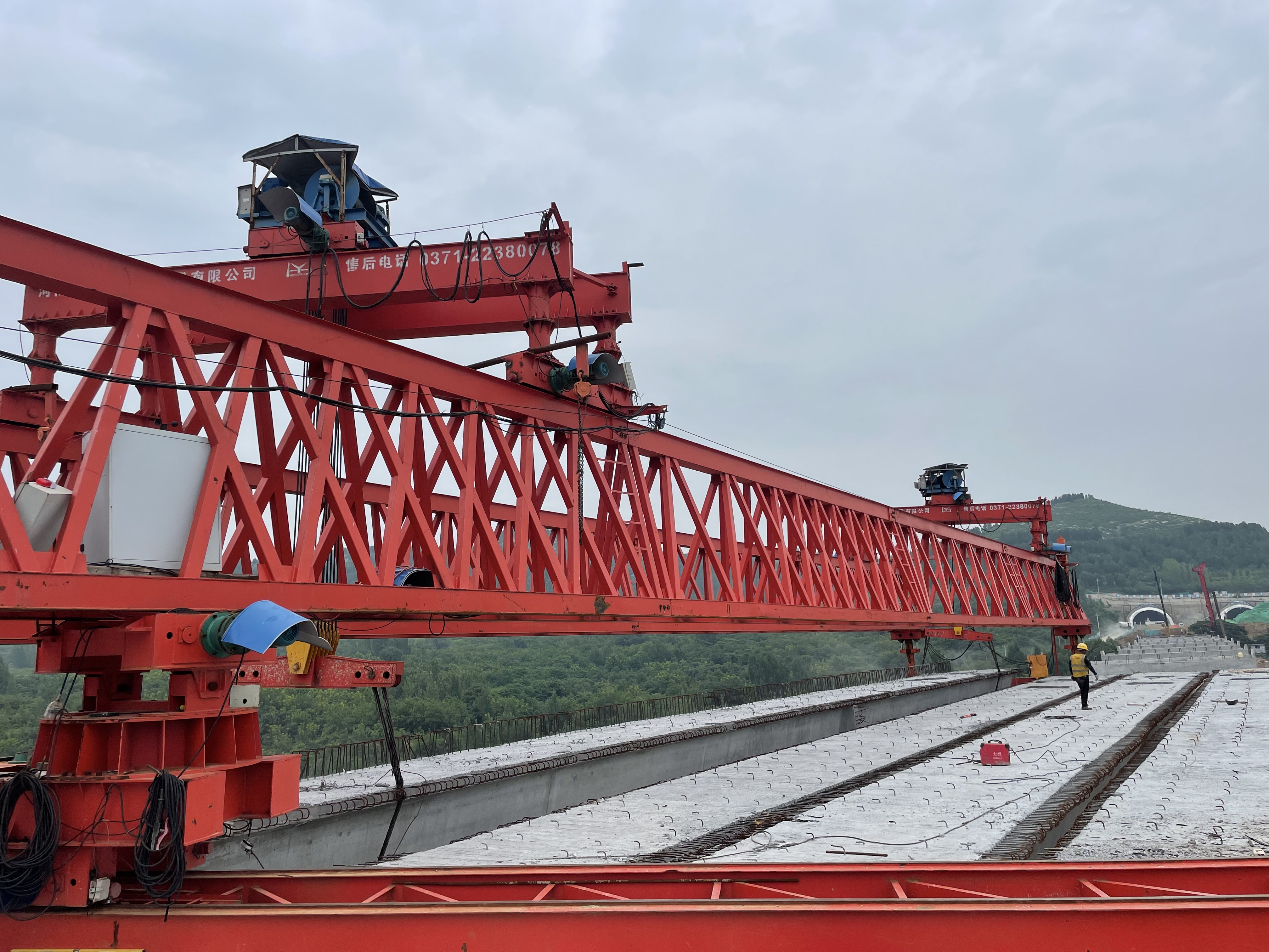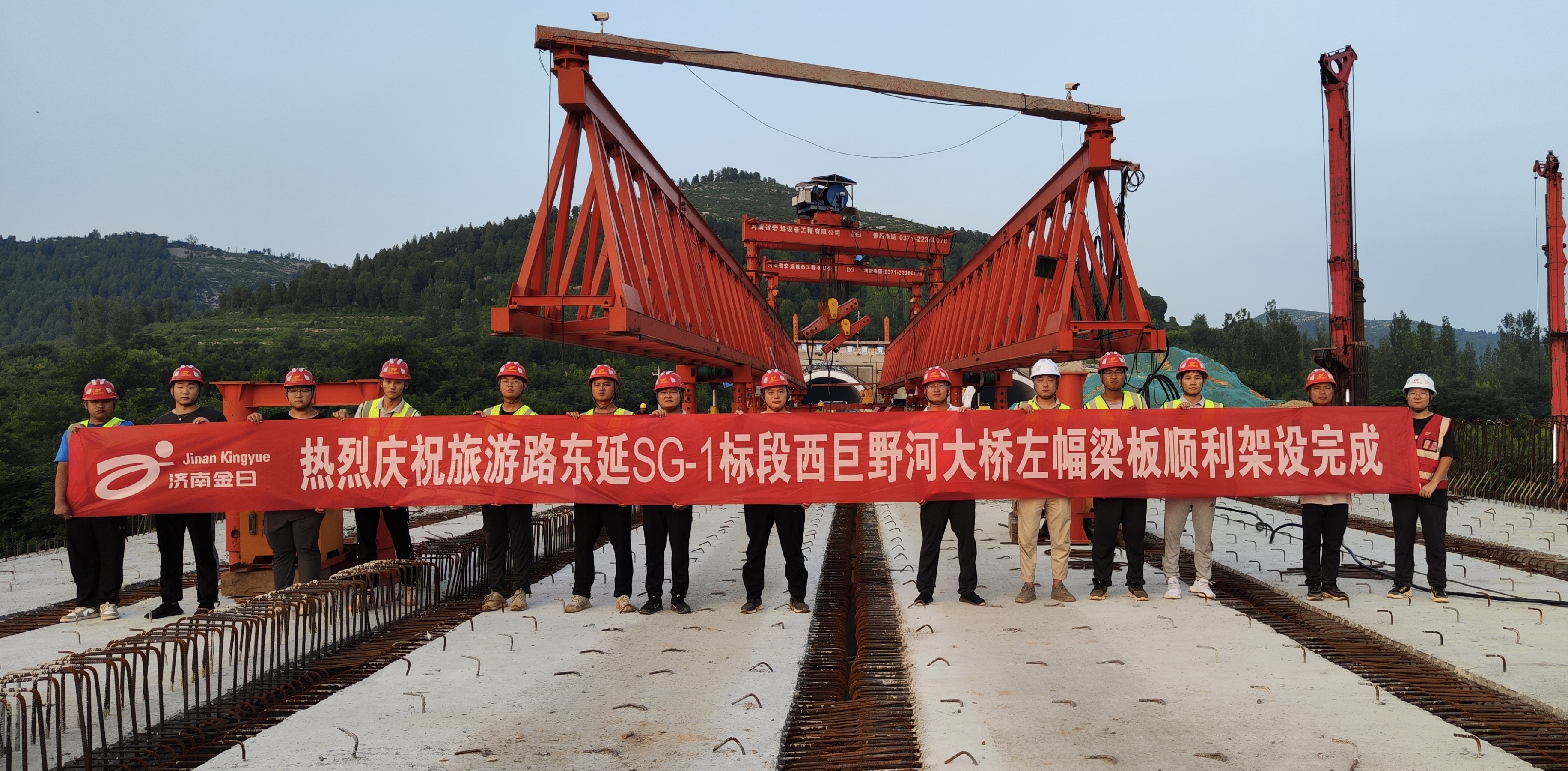 为确保既定目标的顺利完成,金曰公司从架梁方案制定、运梁路线选择、前后场指挥调度等各个环节进行了详尽周密的部署,增加运梁车数量,提前将待架梁板运至现场,做到“梁板排队等桥机”,实现每天完成一跨梁板架设的目标。