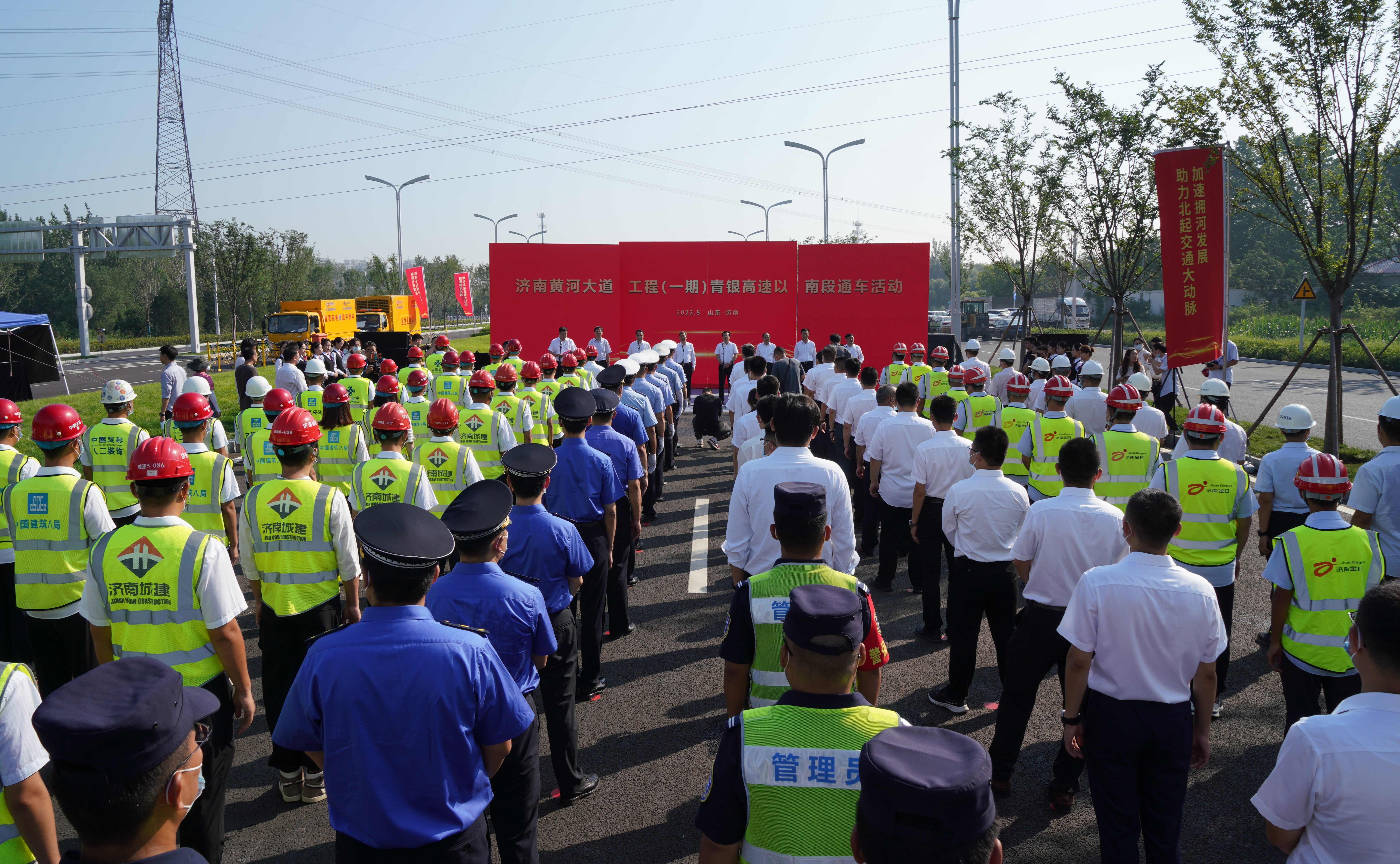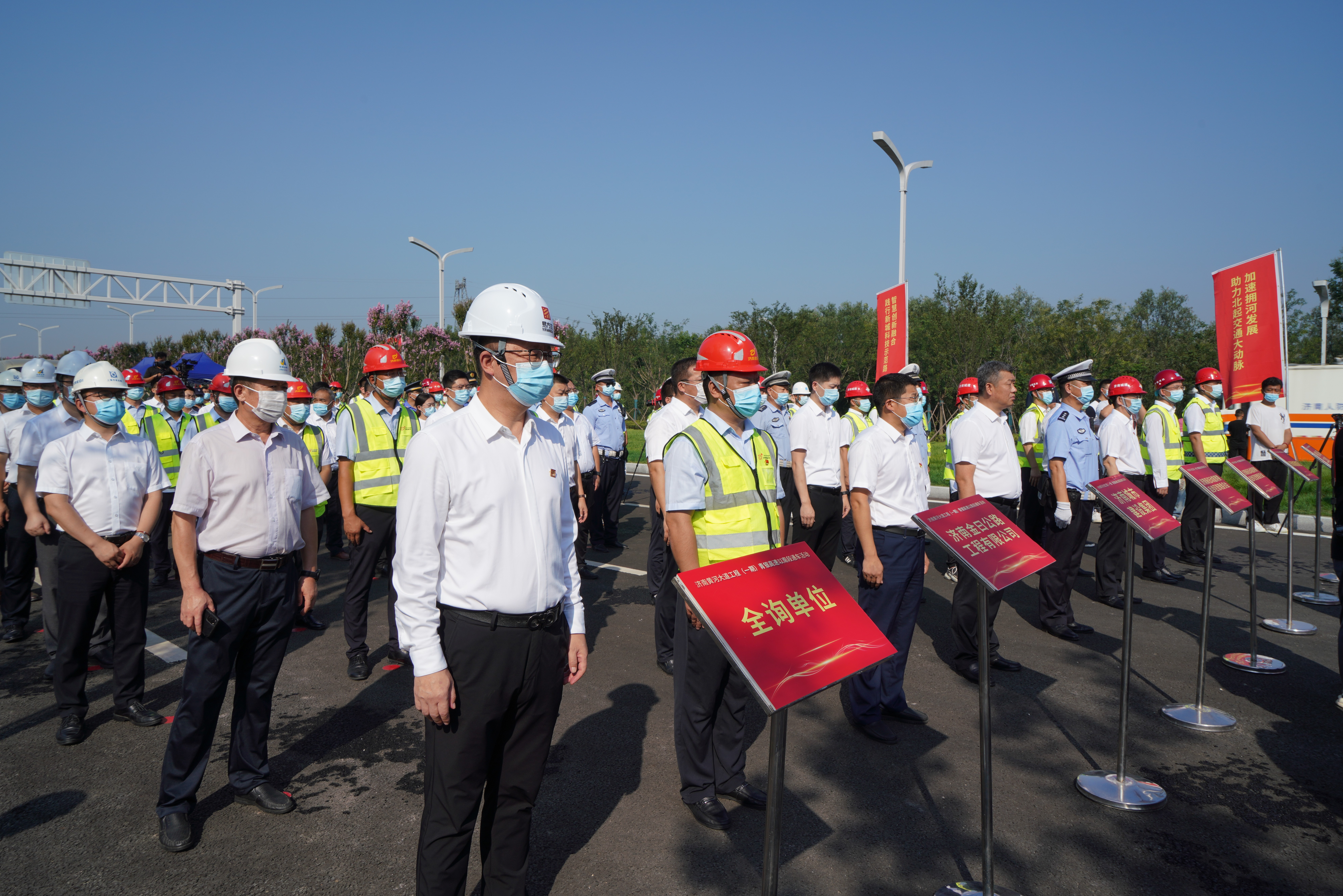 8月17日,济南新旧动能转换起步区黄河大道一期项目(青银高速至G104段)正式通车,全长约11.8公里,成为起步区成立后首条正式建成启用的骨干道路。济南市副市长任庆虎致辞。通车仪式由济南起步区党工委专职副书记李国祥主持。通车仪式上,PA集团官网党委书记、董事长史海成介绍了黄河大道一期项目建设情况。