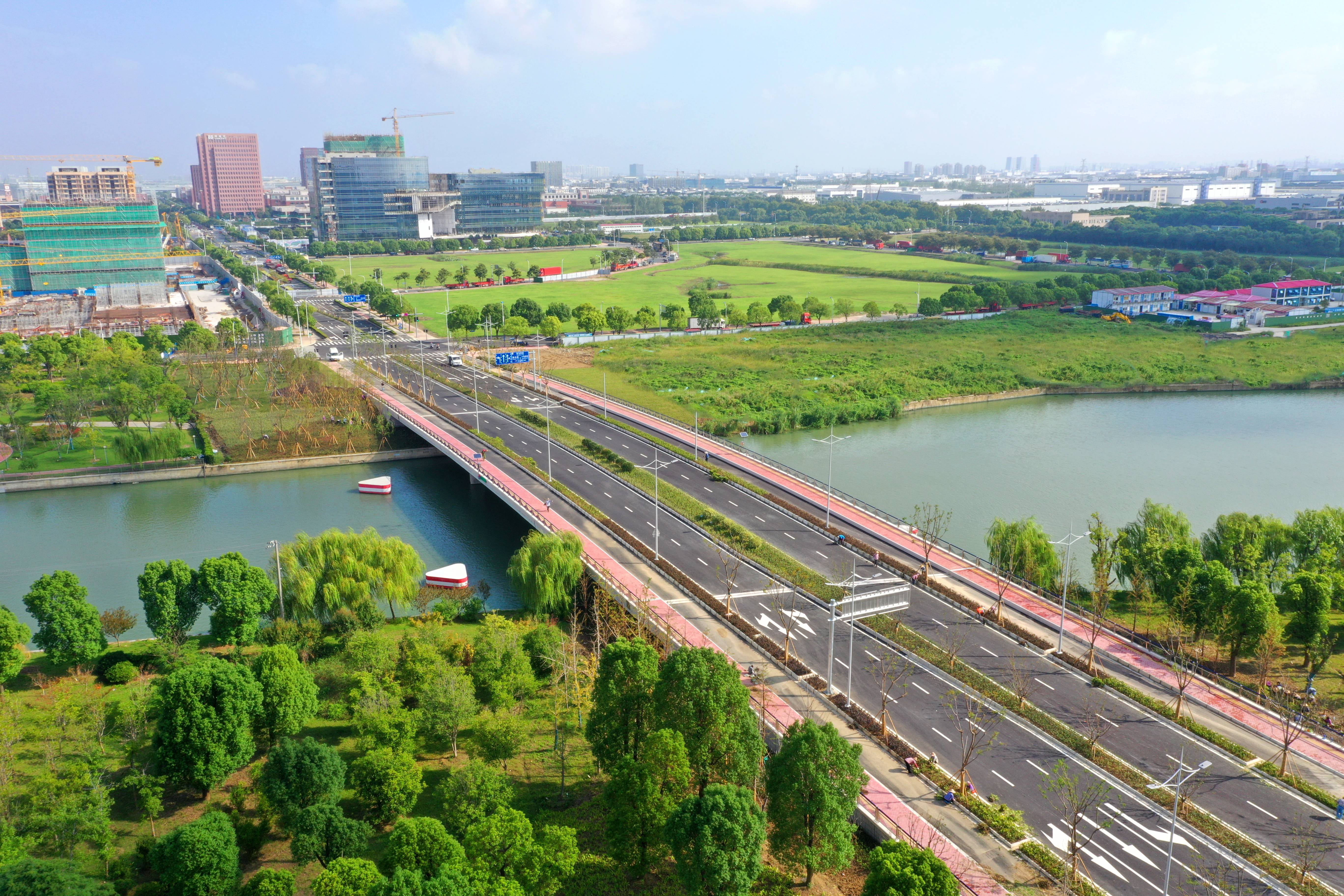 城建集团公司承建的苏州方中街对接海纳街桥梁工程通车