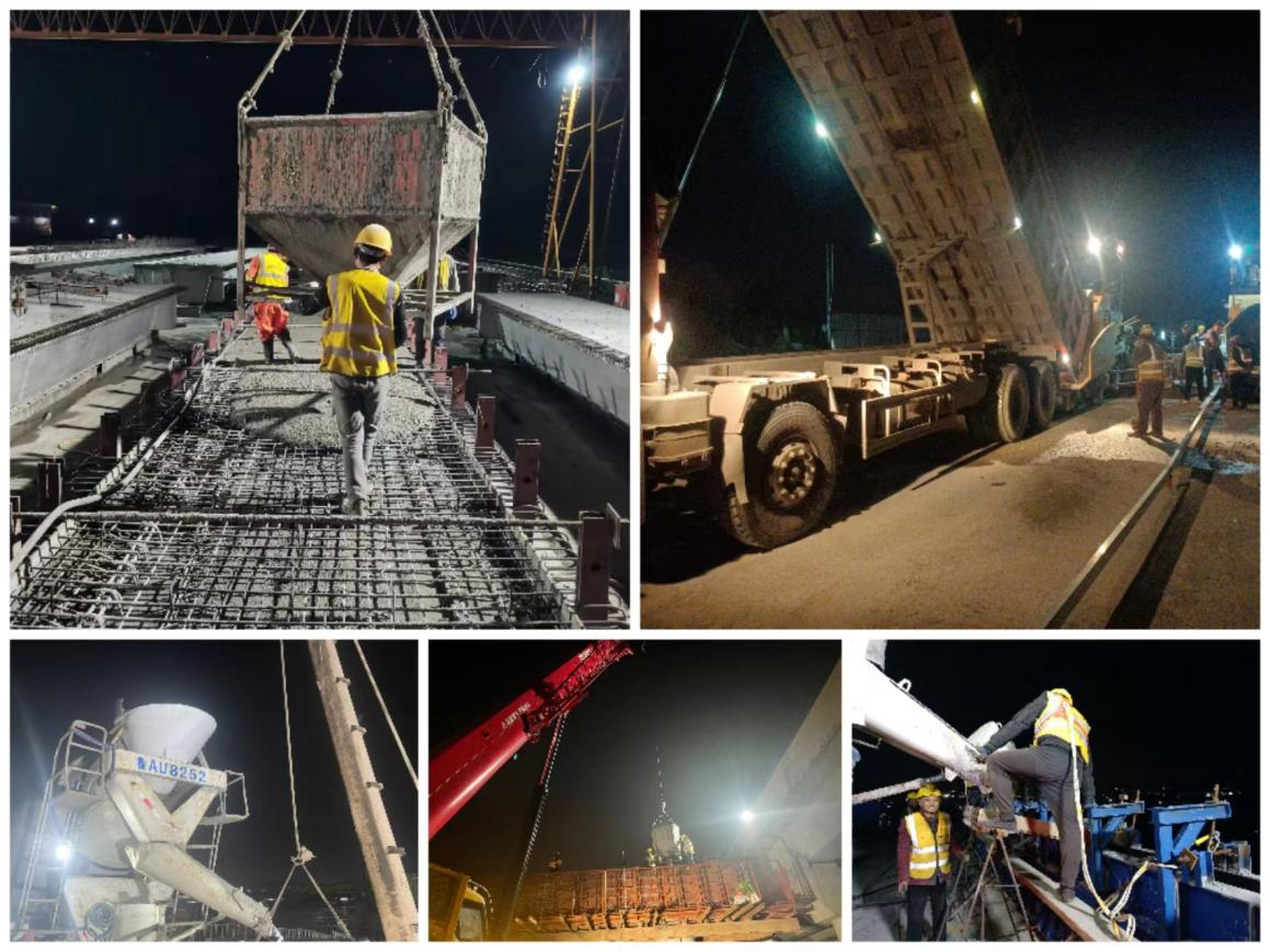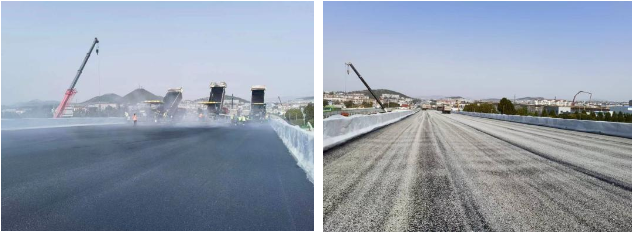 第三阶段交通导改路段全长490米,共计18跨,由105片箱梁、66棵桩基、56根墩柱组成,总面积约7000平方米。项目部前后场紧密配合,优化施工顺序,强化工序衔接,共计调配摊铺机3台、双钢轮压路机4台、运输车20余辆,连续施工24小时顺利完成导改路段路面摊铺,提前一周完成施工。左幅的贯通为桥梁右幅施工提供了作业面,仲宫大桥互通区施工进入冲刺阶段。