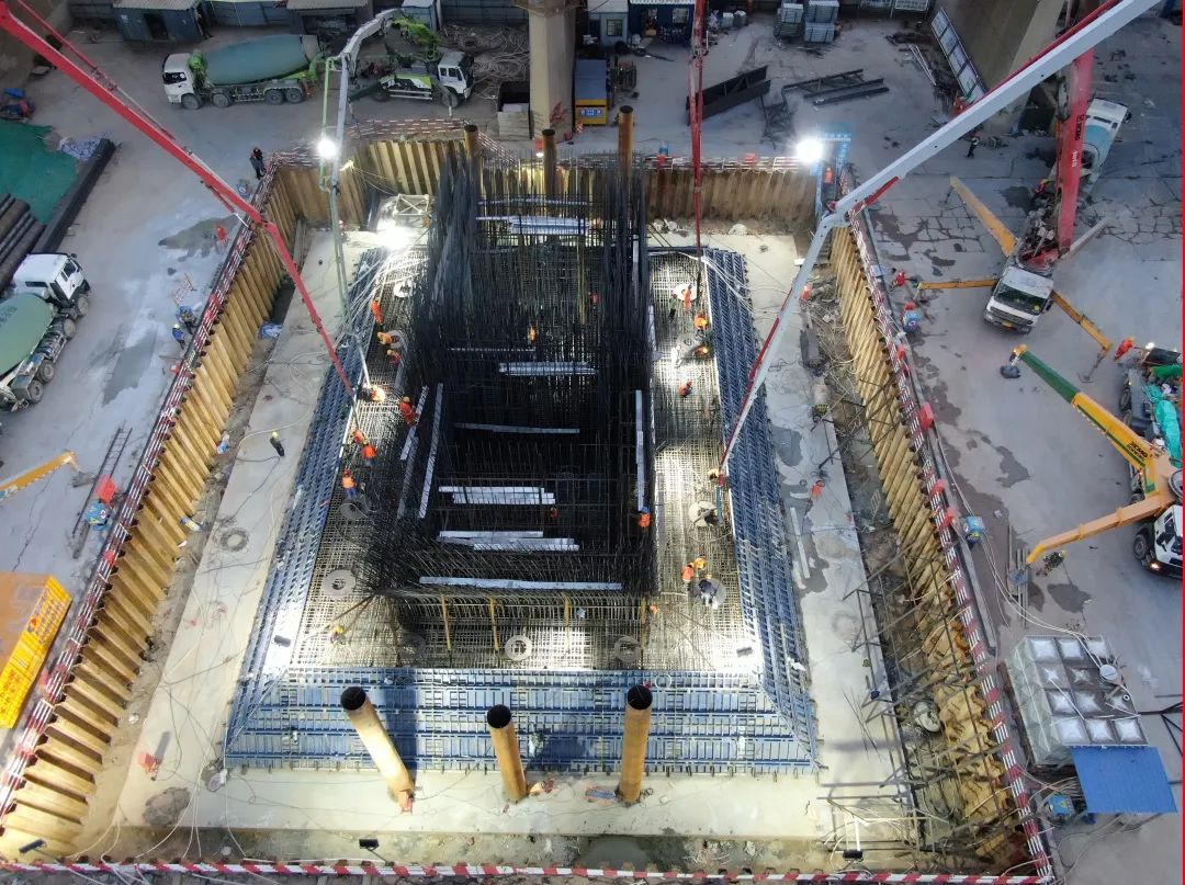 目前,水库南岸暗埋段第九流水段脚手架搭设完成30%,第十流水段顶板混凝土浇筑完成100%;第十三流水段负三层侧墙钢筋绑扎完成100%,中隔墙施工完成50%,脚手架搭设完成75%;第十四流水段第五道钢支撑拆除完成90%;第十五流水段底板混凝土浇筑完成75%。同时,管片预制也在同步生产中。