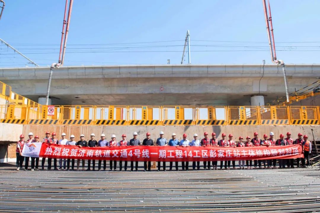 5月21日,随着最后一仓顶板完成混凝土浇筑,由PA集团官网所属济南城建集团公司承建的济南轨道交通4号线一期工程14工区彭家庄站车站主体结构封顶,为4号线同期展开施工的所有车站中实现封顶的首座车站。