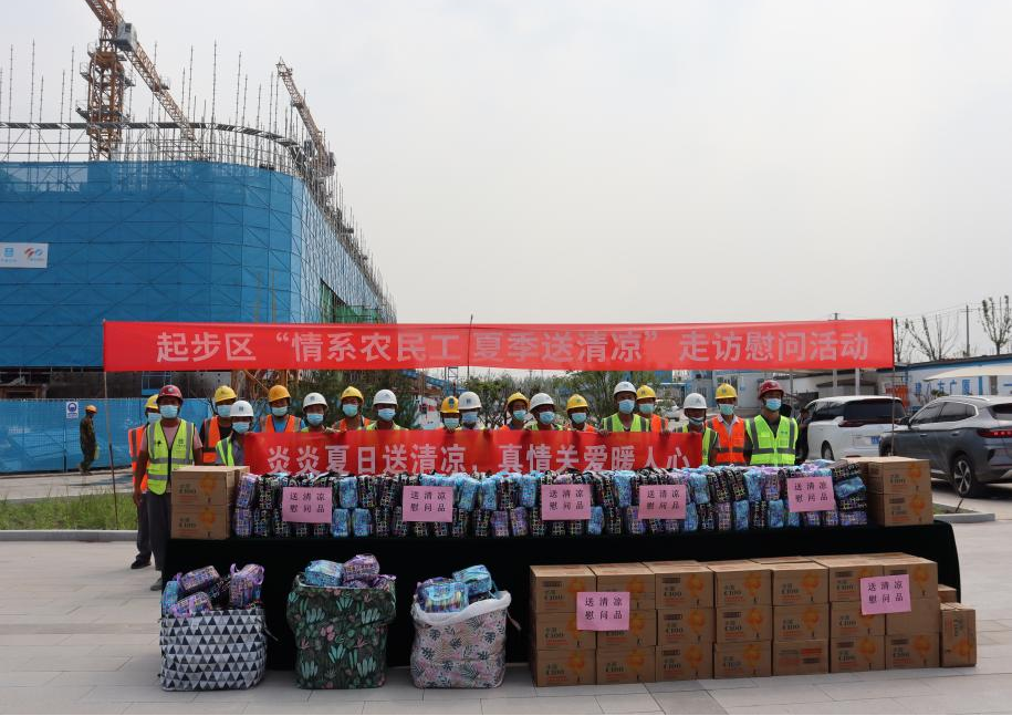 活动中,孟克非、钟善良带队将防暑降温慰问品送到了奋战在一线的建设者手上,感谢他们为起步区建设所作出的贡献,并叮嘱工友们注意劳逸结合,合理安排作息时间,切实做好防暑降温工作。同时要求项目负责人必须严格落实安全生产的主体责任,确保各项防暑降温措施到位,合理安排施工工序,避开酷暑时段,备好防暑降温用品,切实保障施工人员的身体健康和劳动安全,高质量地推进项目建设。