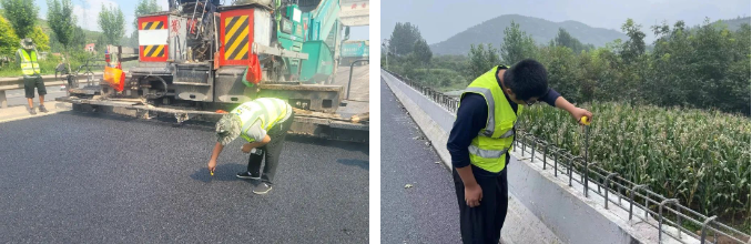 加强质量管控,提升工程品质。工作中,严格按照设计文件、规范规程等开展质量监理工作。在源头上严控原材料,配合施工单位研究处理各类病害;施工期间,总监办加强巡视与旁站,从细节把控工程施工质量,发现问题及时督促施工单位整改,确保工程质量。