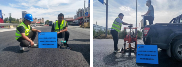 G308文石线章丘刁镇贾家至水寨段养护项目作为章丘区的重要门户运输通道,交通量较大,超载大货车占比增多,部分交叉路口出现严重车辙,极大危害行车安全。沥青路面铺装过程中,技术人员全程参与沥青混合料生产、路面摊铺作业、路面碾压成型、试验检测全过程,对每一个环节进行严格把控,确保各项试验参数准确无误;路面铺装完成后,经过现场渗水和压实度试验,指标参数均满足设计规范要求。