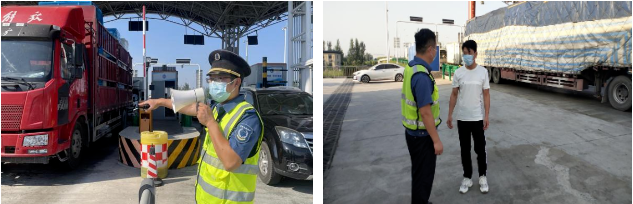 坚决落实“十一”假期高峰时段对危化品、超限超载车辆等限行工作,外勤为司乘人员耐心解释并普及相关政策。