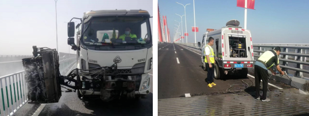 对桥面、防护栏进行深度保洁,为过往司乘提供舒适的出行环境。