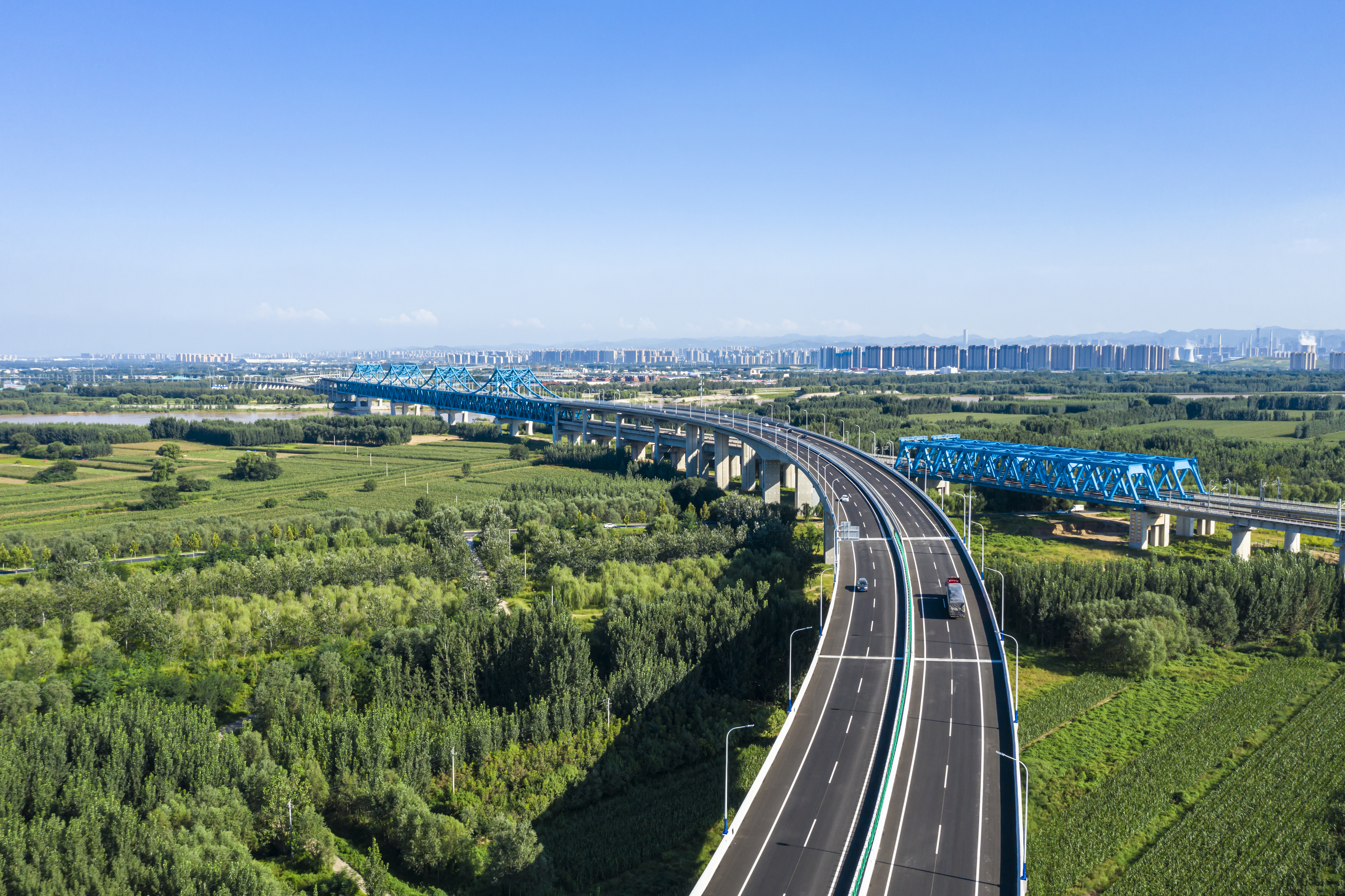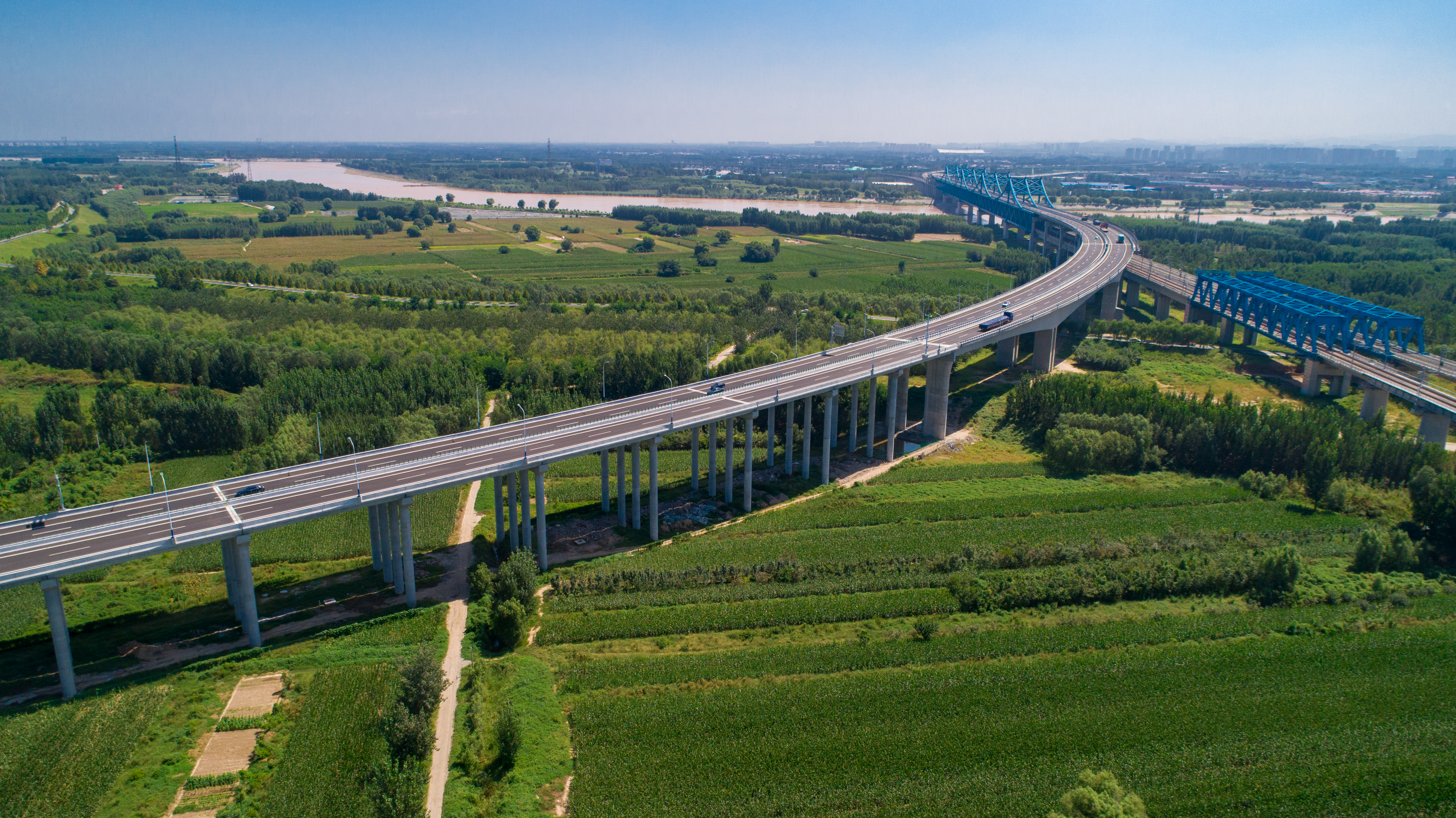济南至乐陵高速公路南延线项目起点位于济乐高速与青银高速连接的崔寨枢纽互通立交,向南跨越G220国道及黄河,顺接济南市规划城市主干道荷花路。项目全长12.668公里(含公铁合建段1.796公里),概算投资51.05亿元,双向四车道,设计速度100公里/小时。设华山北、崔寨南收费站2处,养护工区1处、监控管理分中心1处。