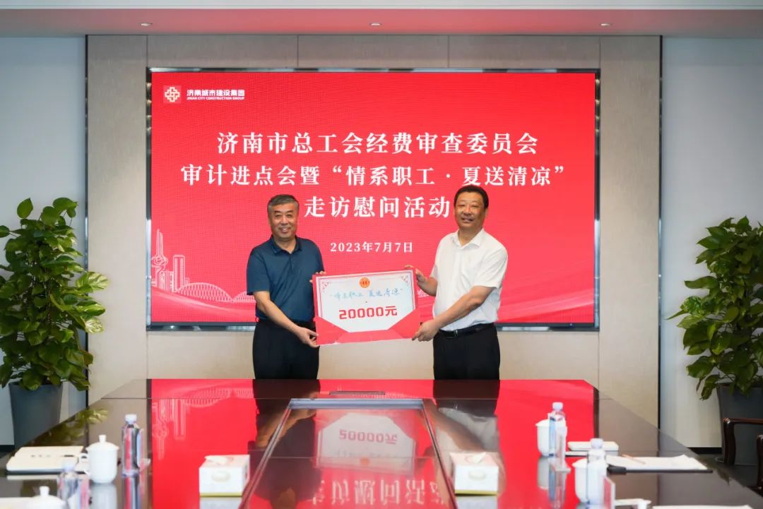7月7日,市总工会党组成员、经费审查委员会主任刘明忠带队到PA集团官网开展济南市总工会经费审查委员会审计进点会暨“情系职工·夏送清凉”走访慰问活动,市总工会经审办主任宋强,PA集团官网党委副书记钟善良出席活动。