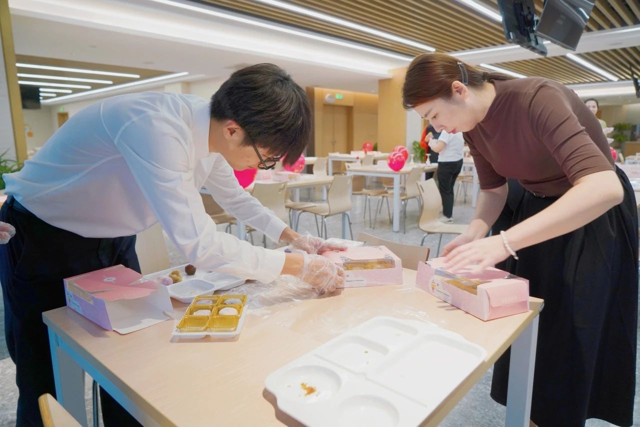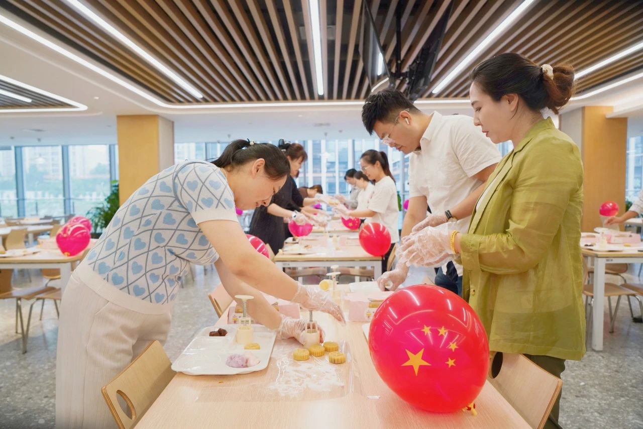 活动现场,糕点师傅悉心指导,员工们踊跃参与,并交流分享月饼的制作方法和文化内涵,在动手制作中感受传统文化魅力和浓厚的节日氛围。