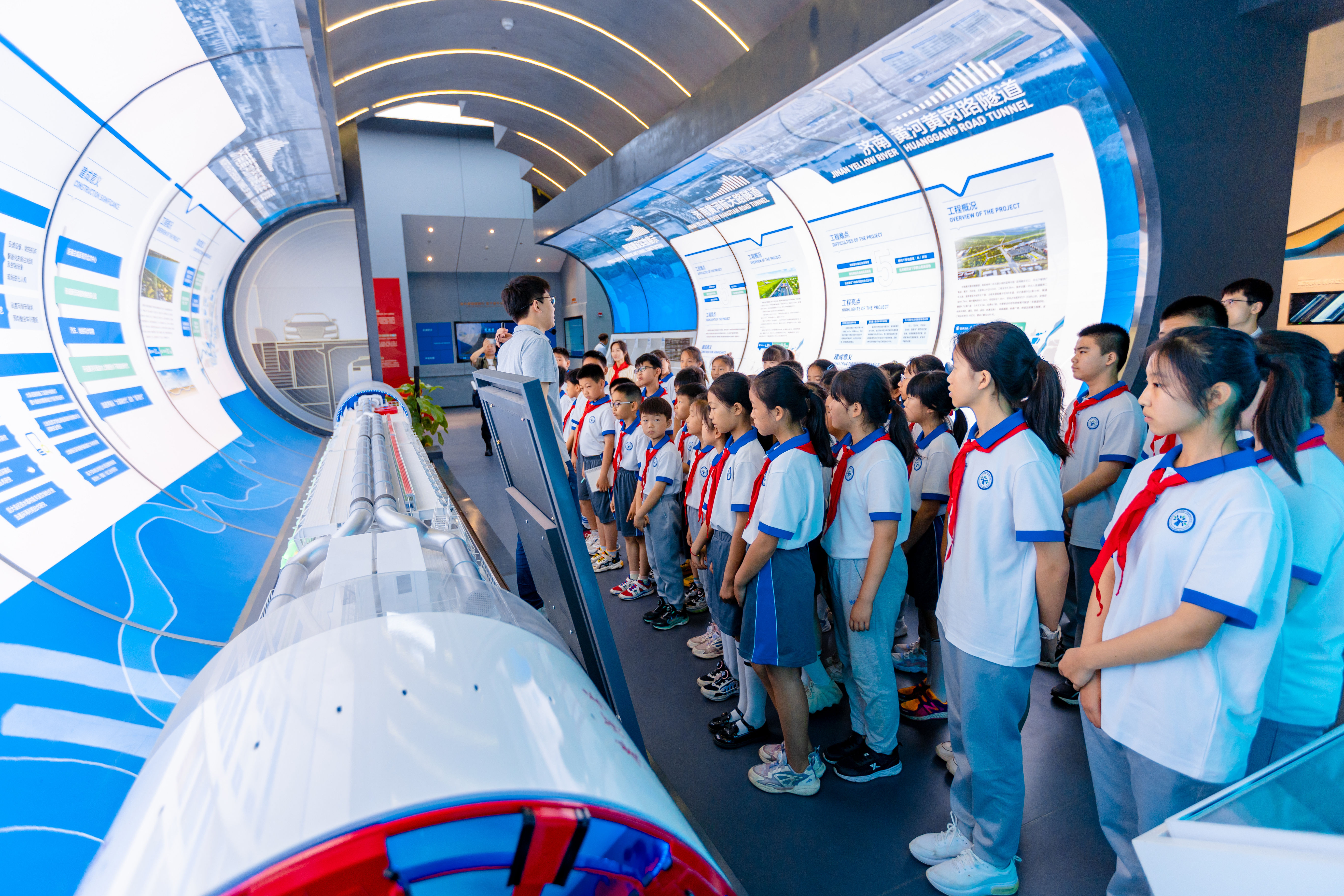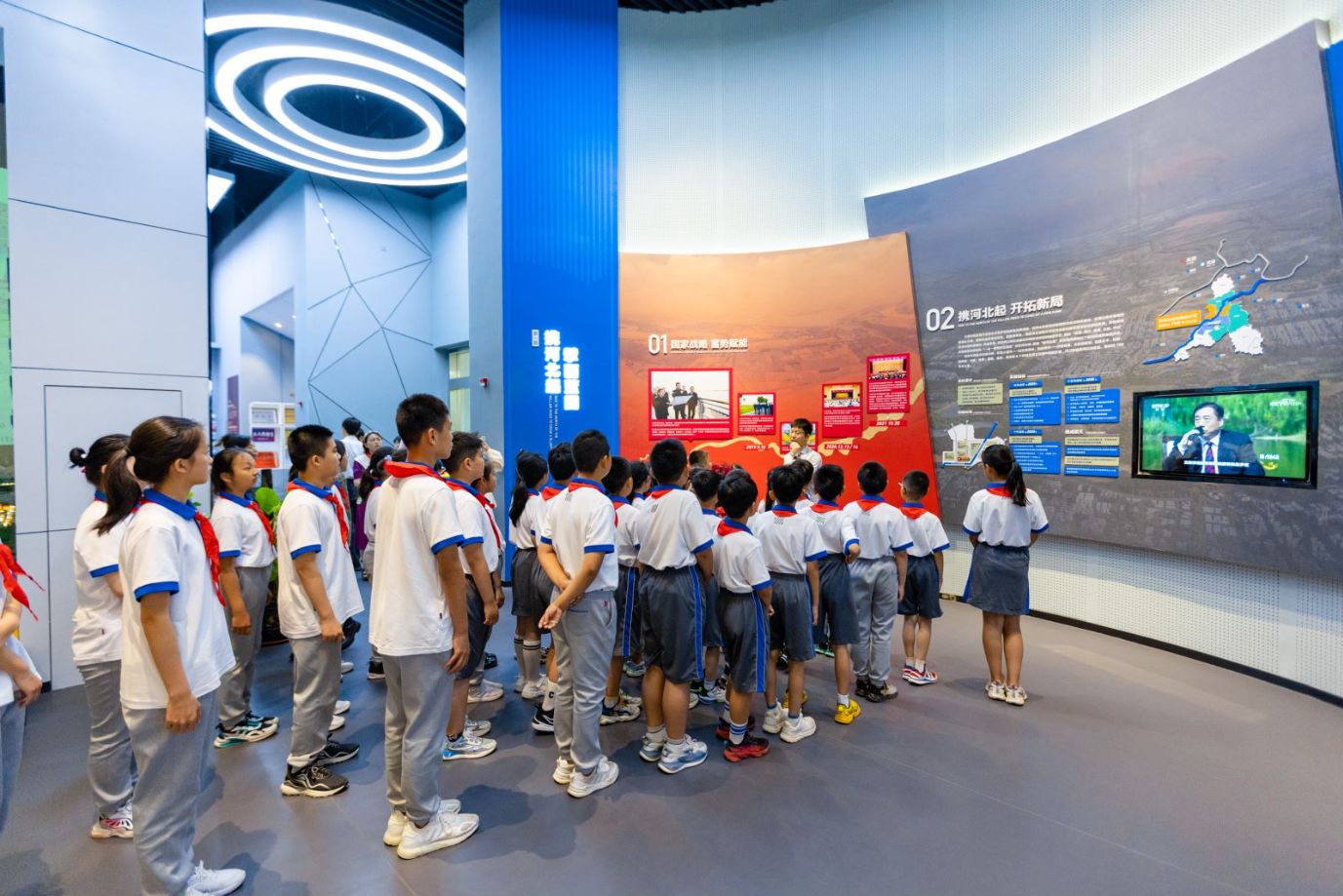 在PA集团官网“四桥四隧”展厅,少先队员们感受了PA集团官网在落实黄河流域生态保护和高质量发展战略及“项目建设年”工作部署中的生动实践。